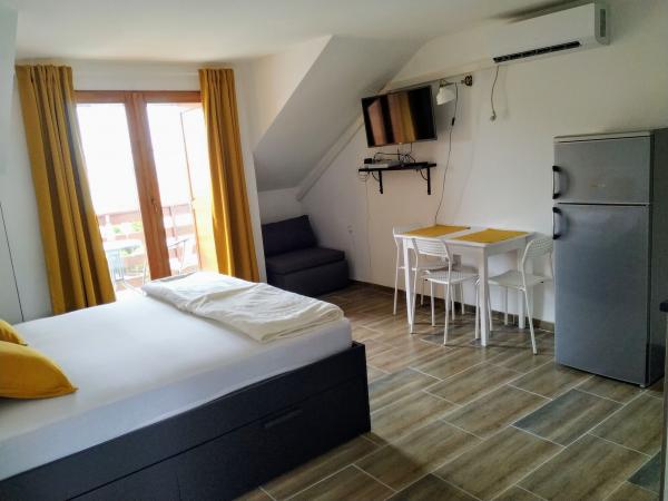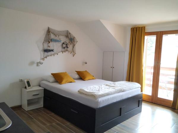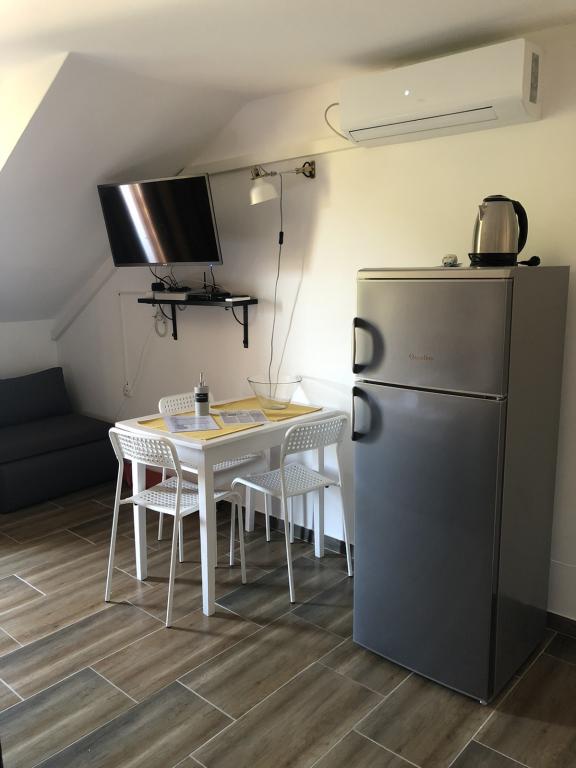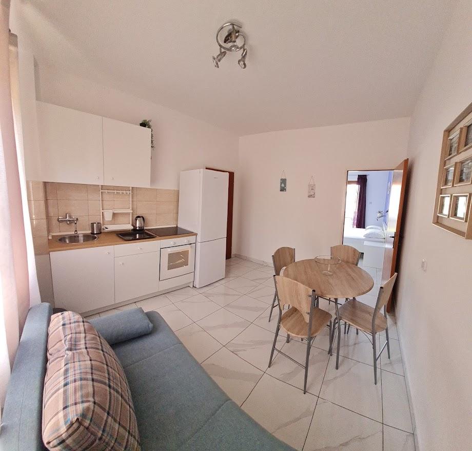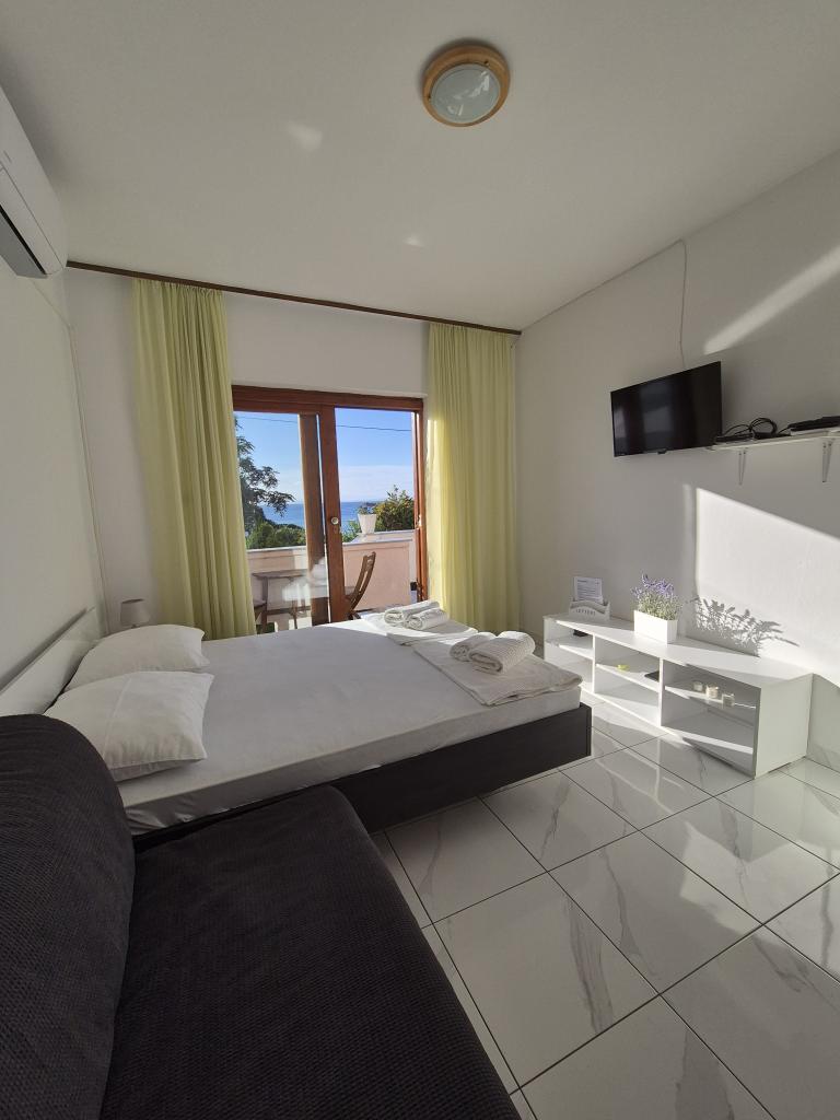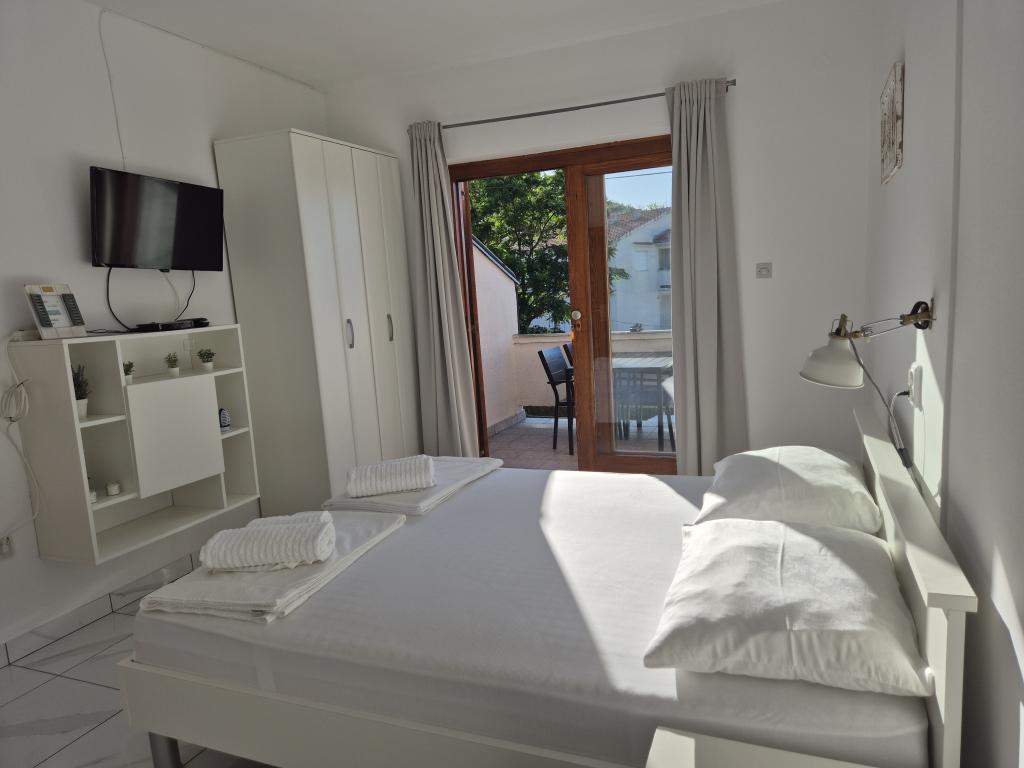 Die Apartments befinden sich in einem ruhigeren und isolierten Teil der Insel Rab, umgeben von einer kleinen Anzahl von Häusern, fast unmerklichem Verkehr und minimalem Kontakt mit der Außenumgebung, was ein Gefühl vollkommener Ruhe und völliger Entspannung vermittelt. Sie und Ihre Familie werden von einem schönen und ordentlichen Raum mit direktem Blick auf das Meer empfangen, das nur fünfzig Meter (zu Fuß) entfernt ist, mit mehreren Arten von Stränden in der Umgebung, ideal für Ehepaare mit Kindern. Das Haus besteht aus zwei Apartments (jeweils für vier Personen) und zwei Studio-Apartments (jeweils für drei Personen). Alles wurde 2018 komplett renoviert. Die Apartments und Studios sind komplett ausgestattet und verfügen über Sat-TV, Internet, Klimaanlage und bewachte Parkplätze. Das größte Merkmal unserer Gegend ist die vollkommen friedliche Umgebung, die von den Geräuschen von Kreischen, Möwen, Wellen und gelegentlichen Touristenbooten begleitet wird. Der Verkehr rund um die Wohnung ist sehr selten und es gibt keine Überlastung von Touristen, Autos und Einrichtungen. Sie können die Kinder unbesorgt schwimmen und spielen lassen.