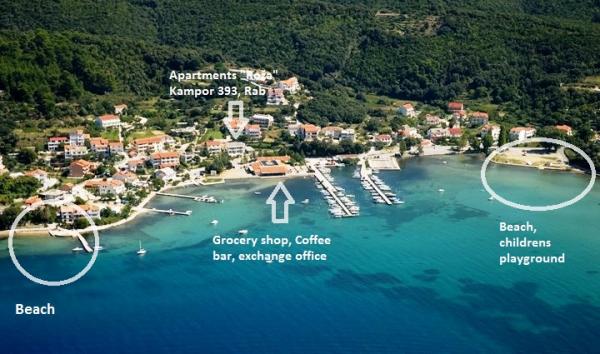Die Apartments Roža liegen in einer der schönsten Buchten der Insel Rab, im ruhigen Dorf Kampor, nur 30 Meter vom Meer entfernt. Sie bieten den perfekten Ort zum Entspannen am Meer, Ruhe und mediterranem Flair. Jedes Apartment verfügt über eine Terrasse mit Meerblick – ideal für den Morgenkaffee oder um den Sonnenuntergang zu genießen. Wir befinden uns mitten in Kampor, wo Geschäfte, Cafés und Restaurants bequem zu erreichen sind. Der bekannte Sandstrand Mel, besonders geeignet für Familien mit Kindern, ist etwa 10 Gehminuten entfernt, während die nächsten Beton- und Kieselstrände nur wenige Gehminuten entfernt liegen. Willkommen in den Apartments Roža – einem Ort, an dem Meer, Ruhe und Komfort perfekt harmonieren.