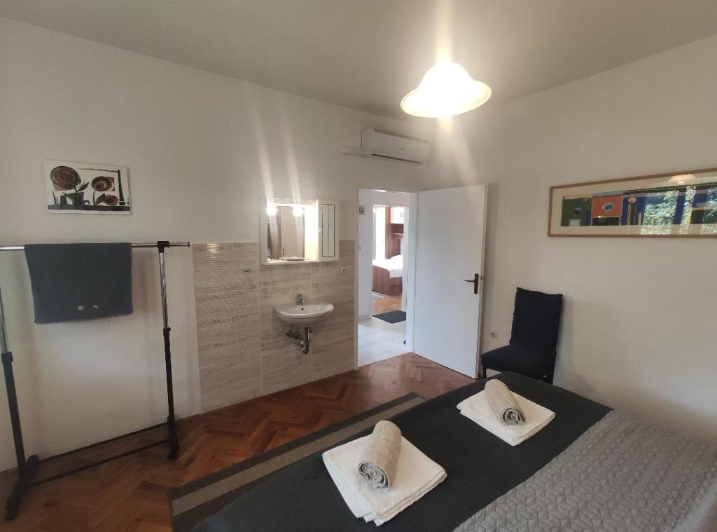 Komplett eingerichtete Apartments in einer ruhigen Gegend von Rab, in einer wunderschönen Bucht, das Meer, 5 Gehminuten zum Zentrum.