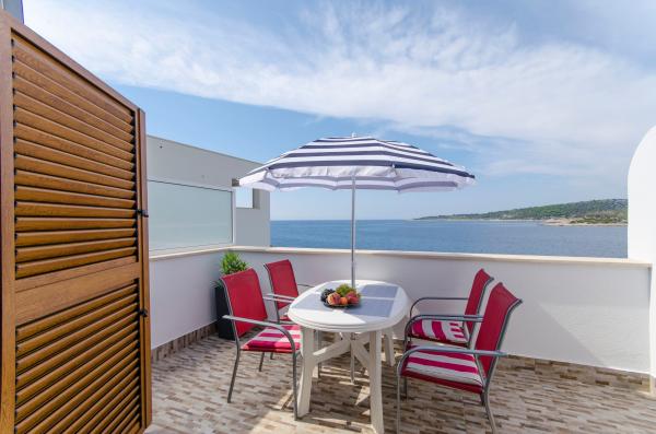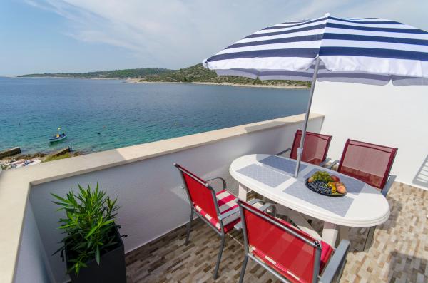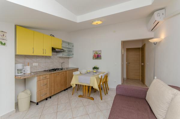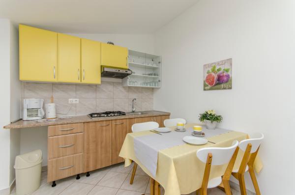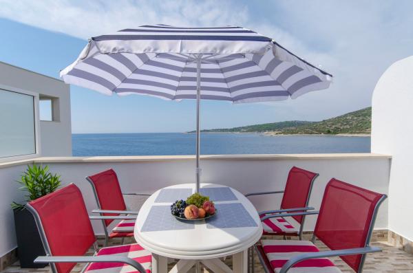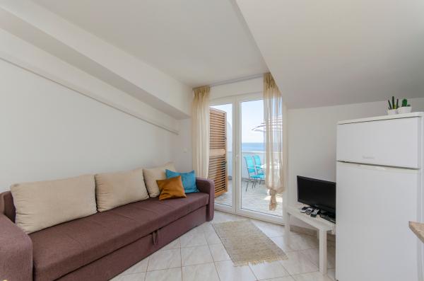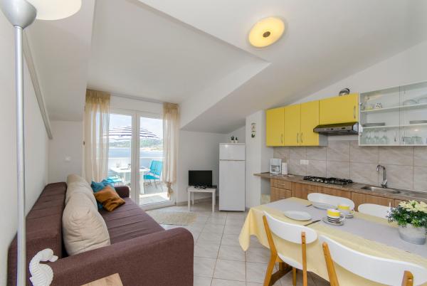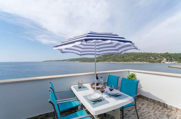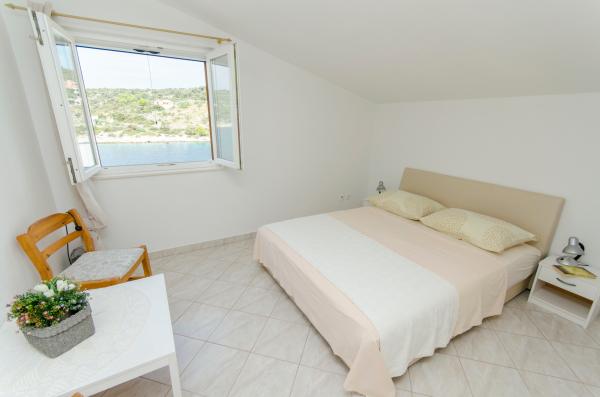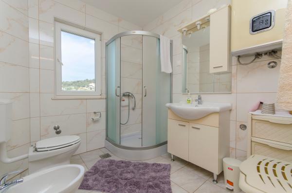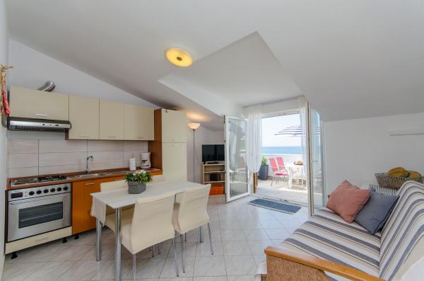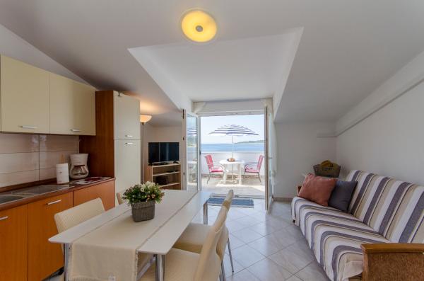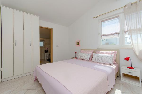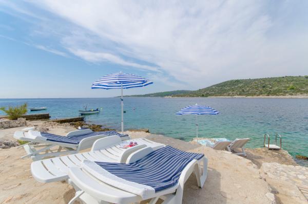 Ein idealer Ort zum Entspannen mit herrlichem Meerblick - es ist eine gute Wahl für alle, die Entspannung suchen, einen ruhigen Ort außerhalb der Stadt, laute Bars und Restaurants, aber es gibt ein kleines Restaurant in der Nähe mit Tagesmenü, Pizza und Eis Außerdem gibt es jeden Tag einen Bäcker mit frischem Brot und Backwaren. Kleiner Laden ist ca. 1 km entfernt. Das Apartment war sauber und hatte ein geräumiges Badezimmer, bequeme Betten, eine voll ausgestattete Küche und ein Abendessen auf dem Balkon, während man den Sonnenuntergang beobachtete - es war wirklich eine schöne Erfahrung! Strand ist nah, Meer sauber. Die Umgebung des Hauses war sauber, sorgfältig gepflegt, grün, duftender Lavendel. Das Parken für das Auto war im Hof der Besitzer und war vor der Sonne geschützt. Freundliche Besitzer, fürsorglich, aber unsere Privatsphäre voll respektiert. Frau Ivanka bot uns mehrmals leckeres selbstgemachtes Gebäck an. Wohnung hat alles, was Sie brauchen, einschließlich AC und schnelles WiFi. Wir waren sehr zufrieden, im Juli 2019 haben wir 2 Wochen hier verbracht. Danke schön! Peter und Gabriela, Slowakei
