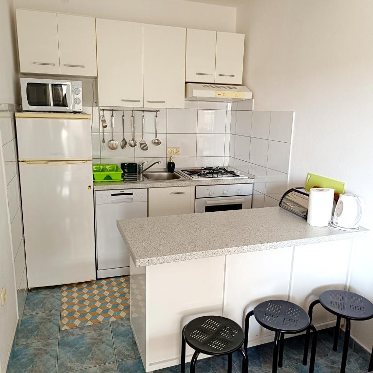 Wirklich schöner Ort, sowie zu gute Wohnungseigentümer. Die Aussicht von der Wohnung ist etwas Unbeschreibliches, und es ist wirklich eine Freude, das Blau, das Sie umgibt, zu genießen und aufzusaugen. Die Wohnung ist gut ausgestattet mit allem, was Sie für einen komfortablen Aufenthalt benötigen.