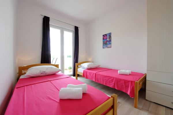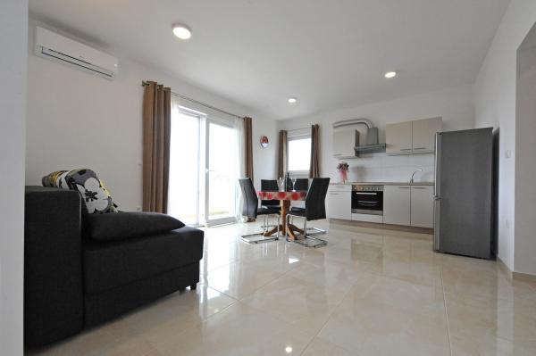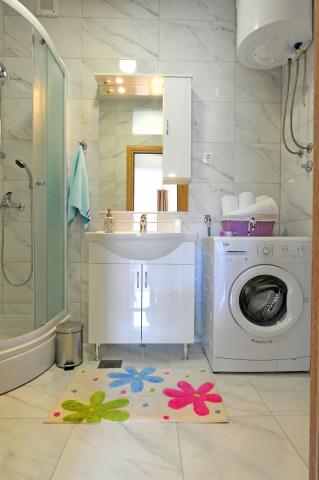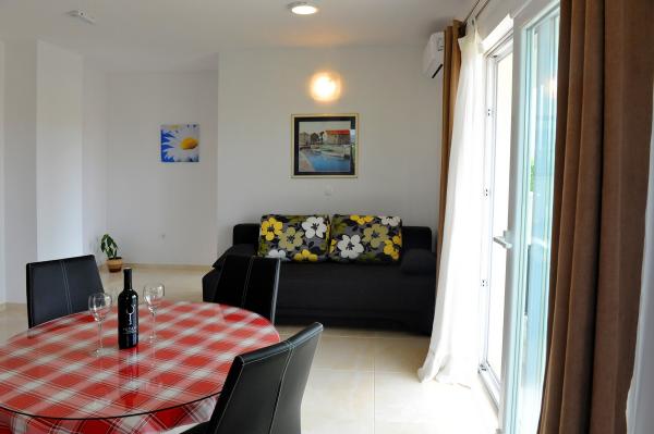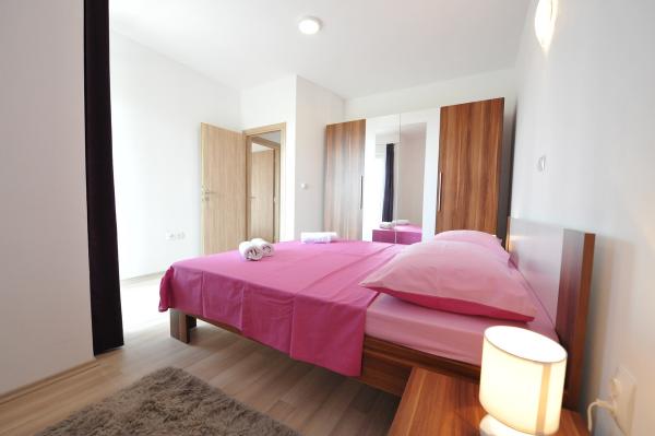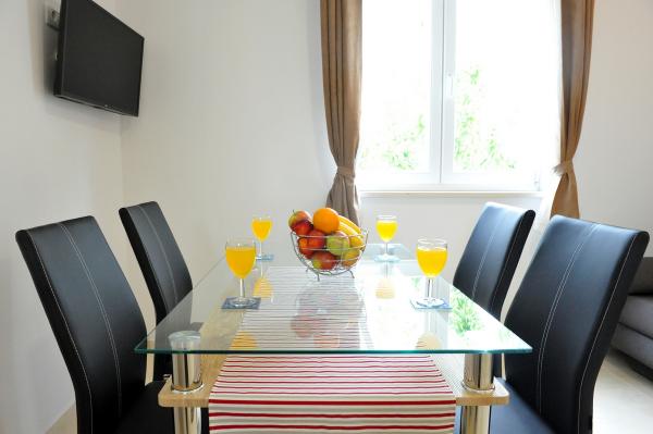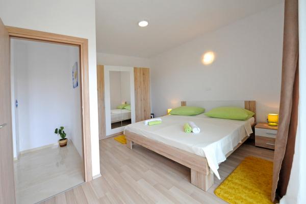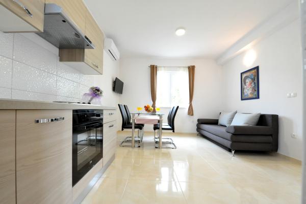 Modernes neu erbautes Haus mit modern eingerichteten und dekorierten Apartments. Das Haus liegt in einer ruhigen Lage, ideal für einen Familienurlaub, mit großer Liegewiese, Garten und Obstbäumen. Die Apartments verfügen über eine voll ausgestattete Küche mit Geschirrspüler, Wohnzimmer, TV, Badezimmer mit Dusche. Gäste haben kostenlose Parkplätze und WLAN.