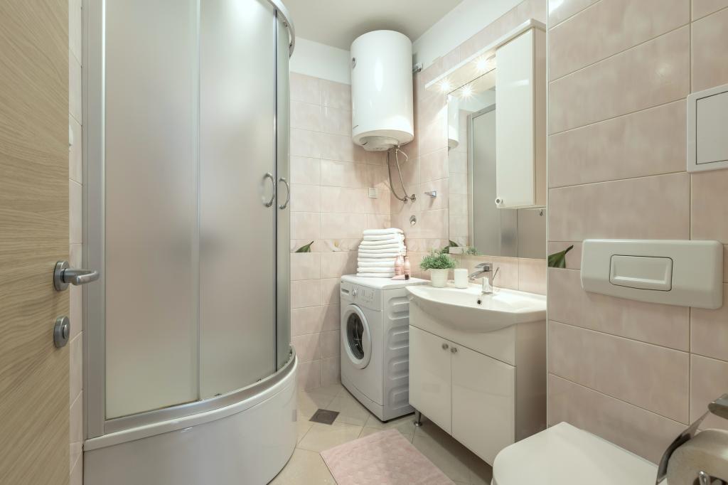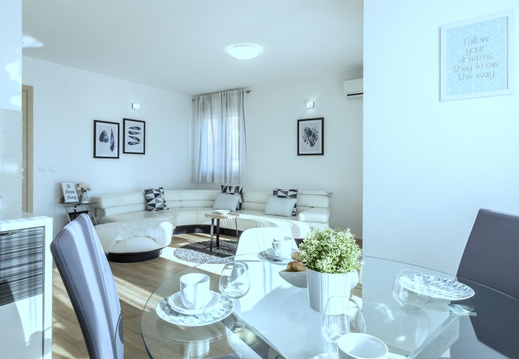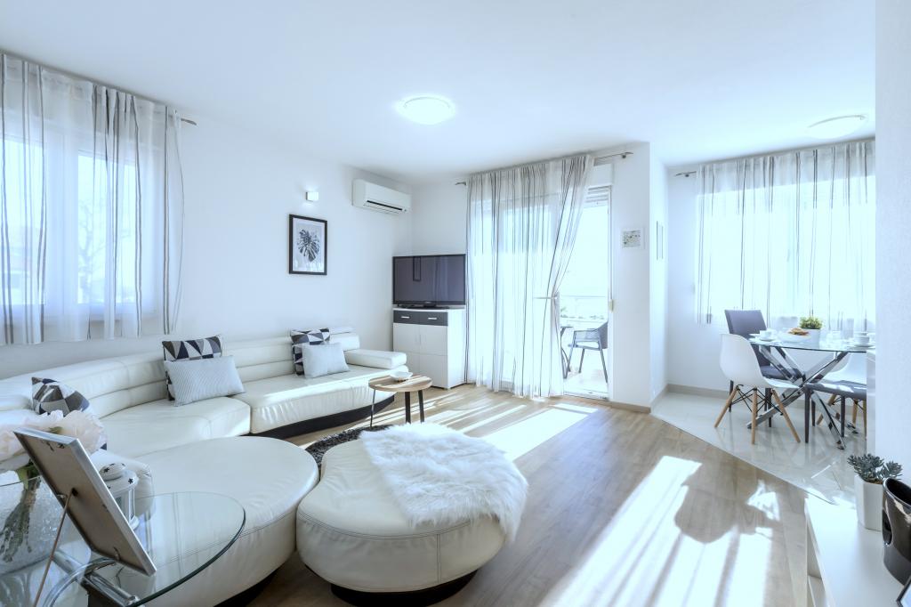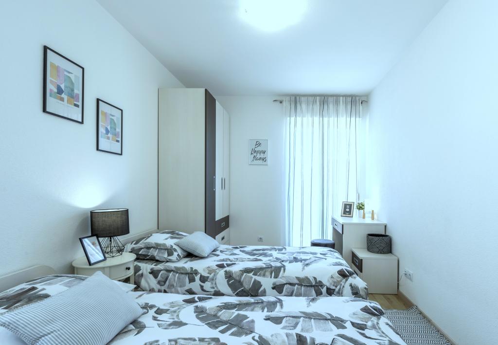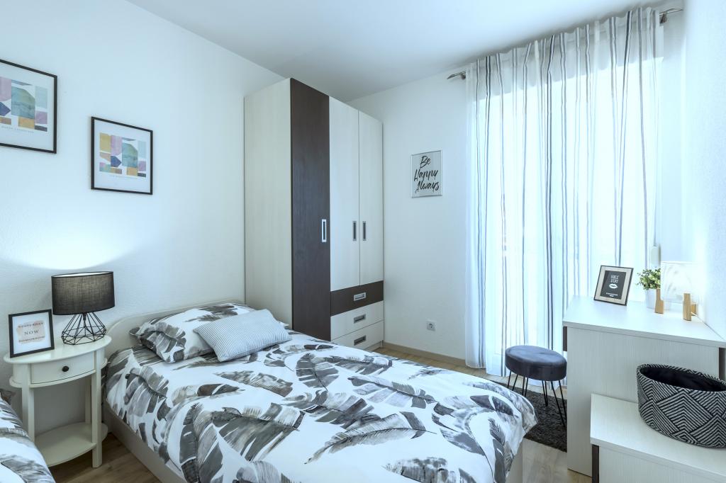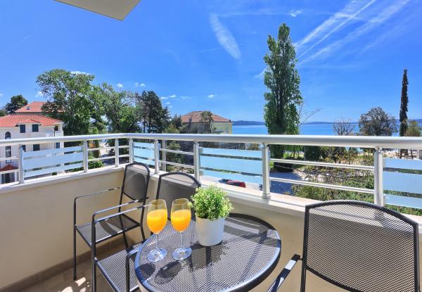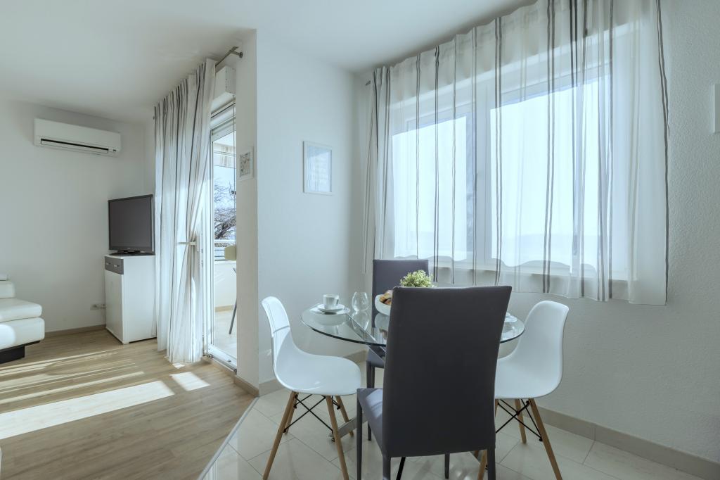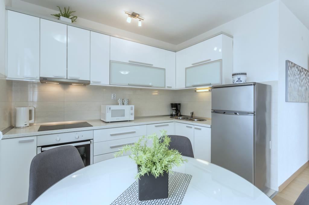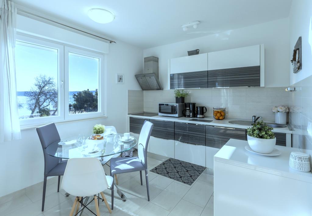 Iris Apartments wurden in 2013th gebaut Jahr und umfassen drei moderne Apartments mit Klimaanlage und elegantes Interieur, in der Nähe der Promenade und Sandstrand plaže.Dječje Spielplatz ist in einem Abstand von 100 metara.Prednost Wohnung befindet sich in der Nähe von großen Städten Split und Trogir, die reich in seiner kulturellen sind baštinom.Ljubitelji Wanderungen können lange Spaziergänge entlang der Küste, die durch sieben Burgen genießen. Die Apartments verfügen über eine voll ausgestattete Küche, Wohnzimmer, zwei Schlafzimmer und Bad mit Dusche. Alle Unterkünfte verfügen über einen Kleiderschrank, eine Sitzecke und Plasma-TV.