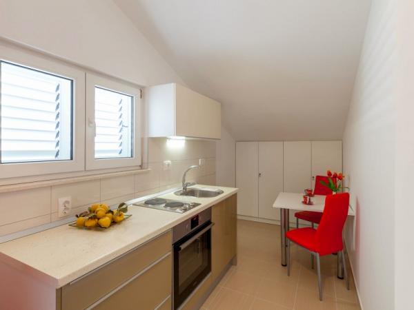 Eine neue und komplett ausgestattete Apartments im Herzen des Schlosses ausgestattet. Im Erdgeschoss gibt es einen großen Supermarkt mit Metzgerei und eine Bäckerei. Die Apartments sind nur 5 Minuten vom Strand, Bars, Restaurants. Bushaltestelle befindet sich 50 m vom Objekt und Ambulanz und Apotheke befinden. Kastela zwischen zwei UNESCO-Stadt Split und Trogir, die etwa 10 km entfernt sind.