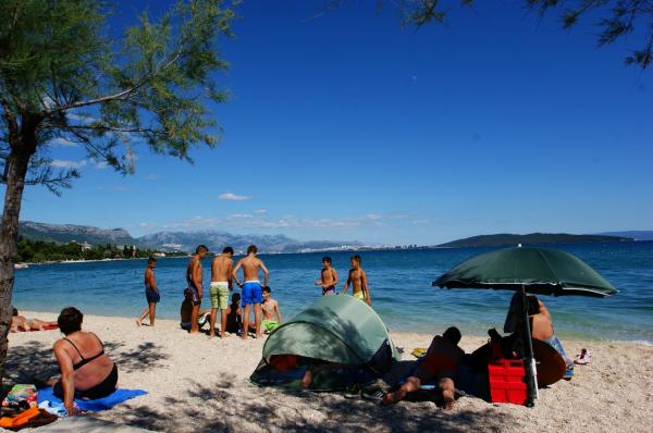 Komplett eingerichtete Apartments nahe der UNESCO Städte Trogir und Split. Nur 50 Meter vom Sandstrand für kleine Kinder geeignet. Das Haus verfügt über insgesamt 3 Wohnungen für maximal 11 Personen. Die Gäste können kostenlose Parkplätze, Wi-Fi und Grill im Freien verwenden.
