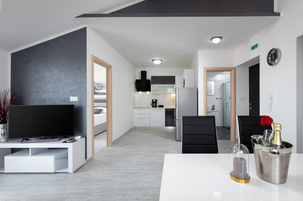Mehr lesen UnterkunftseinheitenWenn Sie nach einem ruhigen und friedlichen Ort, um von den täglichen Aufgaben, ein Ort, wo Sie die magische Mischung aus Geschichte, Kultur und Natur, dann Villa Kordic, der perfekte Ort für Sie und Ihre Familie ganz genießen Ruhe suchen. Wenn Sie einen Hauch von Mittelmeer fühlen und einen unvergesslichen Urlaub verbringen möchten, bieten wir Ihnen in unserem modernen Apartments Villa Kordic, mit atemberaubender Aussicht auf das Meer, die Inseln und die Berge. In der gemütlichen Atmosphäre der Villa möchten wir eine Hand zur Begrüßung zu verleihen und wünschen, dass dieser Ort wäre, um uns daran erinnern, immer wieder kommen. Ideal Abfahrtszeit ist 10.00 Uhr und Ankunft nach 14:00 Uhr. Ihre Gastgeber!