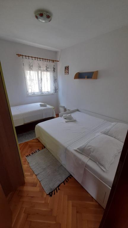 Das Ferienhaus Pera liegt in einer ruhigen Gegend und in der Nähe des alten Zentrums von Kaštel Stari. Es ist 2-3 Minuten entfernt. Zu Fuß erreichen Sie das Zentrum und den Strand des Ortes. In der Nähe des Hauses gibt es einen Supermarkt, eine Bäckerei, eine Bushaltestelle, eine Kirche und eine Bank. Im Erdgeschoss des Hauses gibt es eine voll ausgestattete Küche mit Essbereich, ein Wohnzimmer mit Smart-TV und ein Badezimmer. Das Wohnzimmer hat Zugang zur Terrasse und zum Blumengarten. Im ersten Stock befinden sich 3 Schlafzimmer und ein Badezimmer mit Badewanne. Das Zimmer mit einem geräumigen Doppelbett hat Zugang zu einer Terrasse, die einen Blick auf die Altstadt und das Meer bietet. Das kleine Zimmer verfügt über ein ausziehbares Bett, sodass zwei Personen darin schlafen können. Das Zimmer neben dem Badezimmer verfügt über ein Doppelbett und ein Einzelbett und bietet Platz für 3 Personen. Das Haus verfügt über Parkplätze, kostenloses Internet, Klimaanlage und die Möglichkeit, einen Gasgrill zu nutzen. Ein Kinderbett ist auf Anfrage erhältlich. Abseits von Verkehr und Lärm gelegen, ist das Haus ideal für Ruhe, Entspannung und unbeschwertes und ungestörtes Kinderspiel.