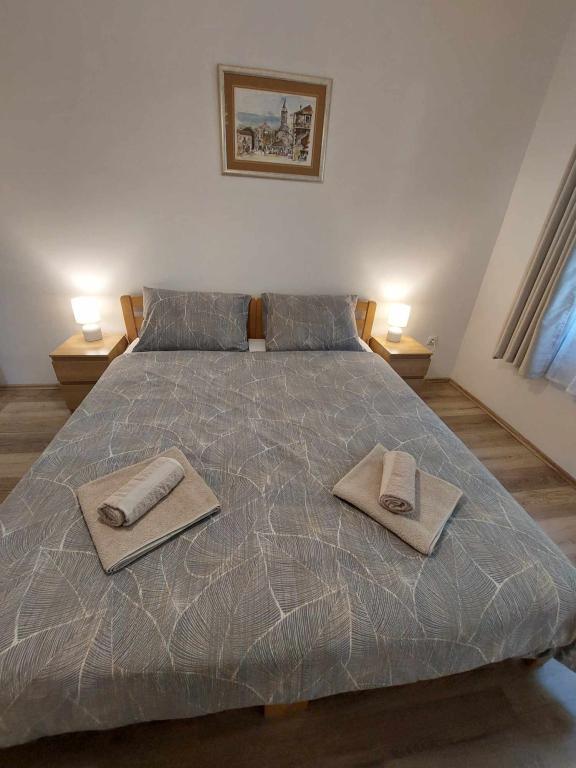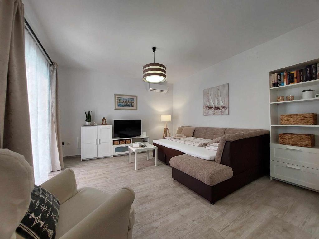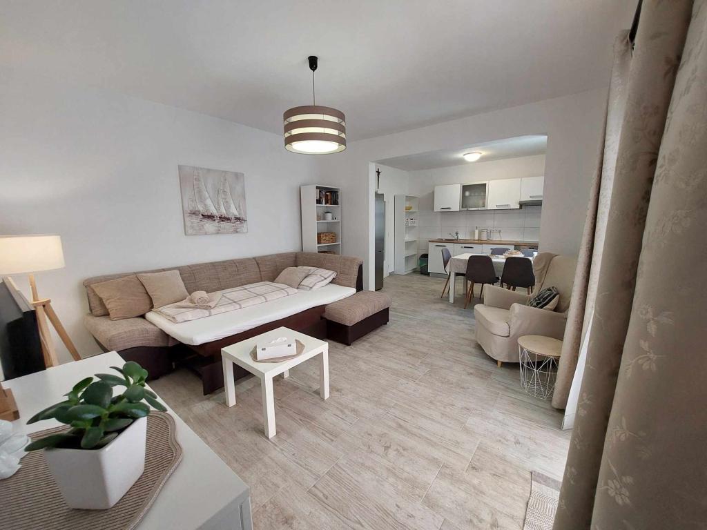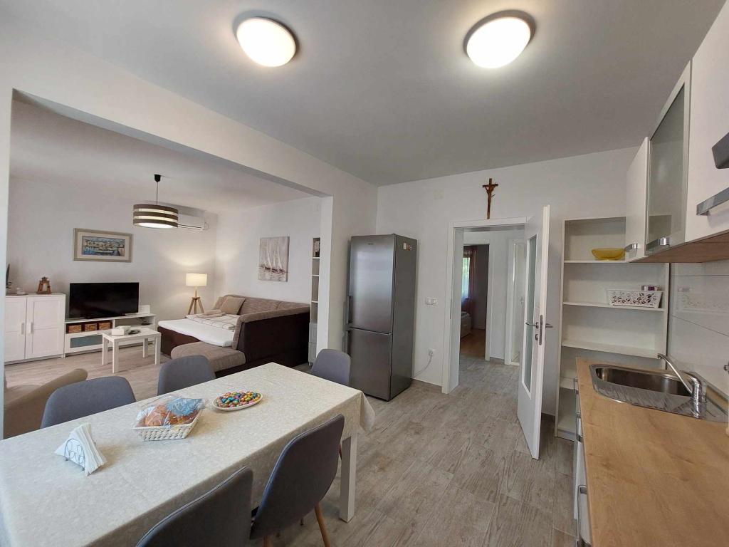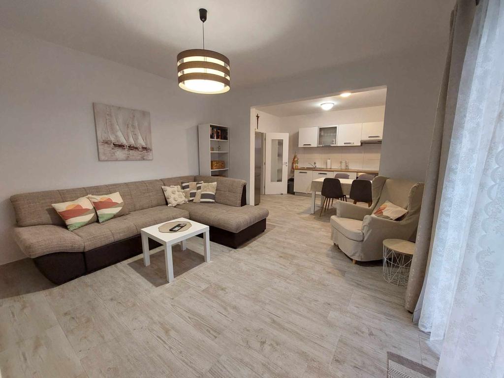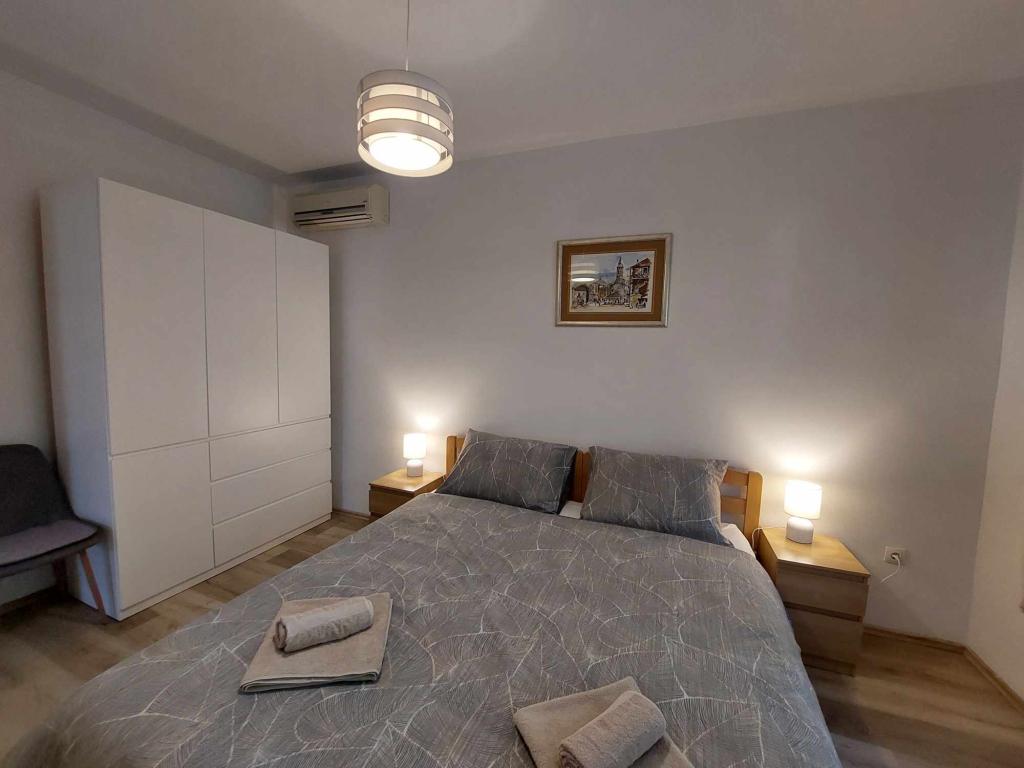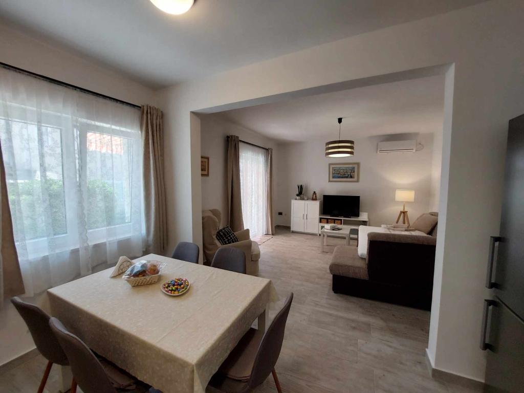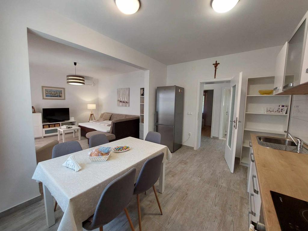 Das Apartment Igor befindet sich im Erdgeschoss eines Familienhauses in der Nähe des Strandes und des Zentrums von Kaštel Lukšić. Die Wohnung verfügt über zwei Schlafzimmer, ein Badezimmer und ein geräumiges Wohnzimmer mit einer voll ausgestatteten Küche. Vom Wohnzimmer aus gibt es einen Ausgang zur Terrasse vor dem Haus. Den Gästen steht ein kleiner Garten und ein tragbarer Gartengrill zur Verfügung. Kaštel Lukšić liegt zwischen Trogir und Split. und ist durch Buslinien gut mit beiden Städten verbunden. Es ist nur zehn Autominuten vom Flughafen Split entfernt. Ein Flughafentransfer ist nach vorheriger Absprache möglich. Wir freuen uns auf Ihren Besuch.
