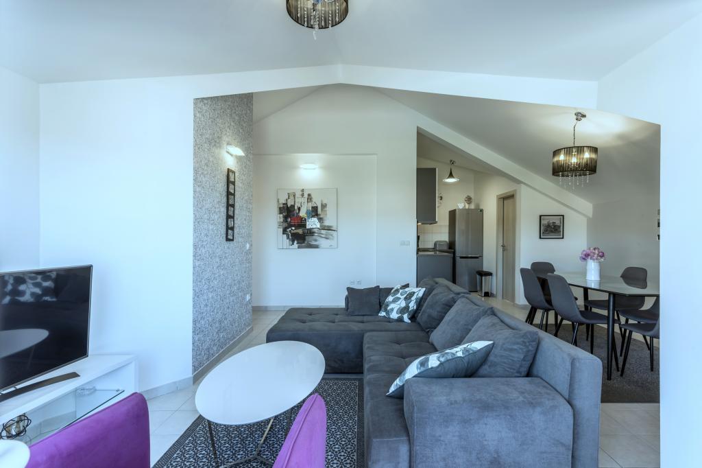 Das Apartment Kalea befindet sich in Kastel Novi, im dritten Stock eines Wohngebäudes mit separatem Eingang. Es ist eine voll ausgestattete und moderne Wohnung mit zwei Schlafzimmern, Bad, Wohnzimmer, Küche und Esszimmer und einem Balkon. Kostenloses WLAN ist in allen Zimmern verfügbar. Ein kostenfreier Privatparkplatz ist ebenfalls vorhanden. Entfernung vom Meer ist 500 m, 18 km von Split und 6 km von Trogir (UNESCO), und 3 km vom Flughafen Split, die mit der lokalen Buslinie leicht zu erreichen sind. Nur 100 m von der Wohnung entfernt befindet sich ein Geschäft und 200 m entfernt ein Restaurant, das Frühstück, Mittag- und Abendessen serviert. Wenn Sie einen angenehmen und erholsamen Urlaub verbringen möchten, besuchen Sie uns bitte!