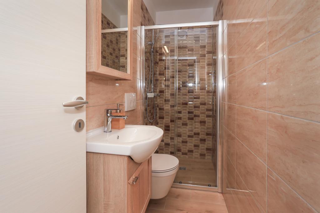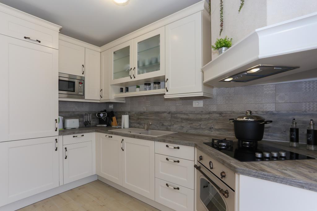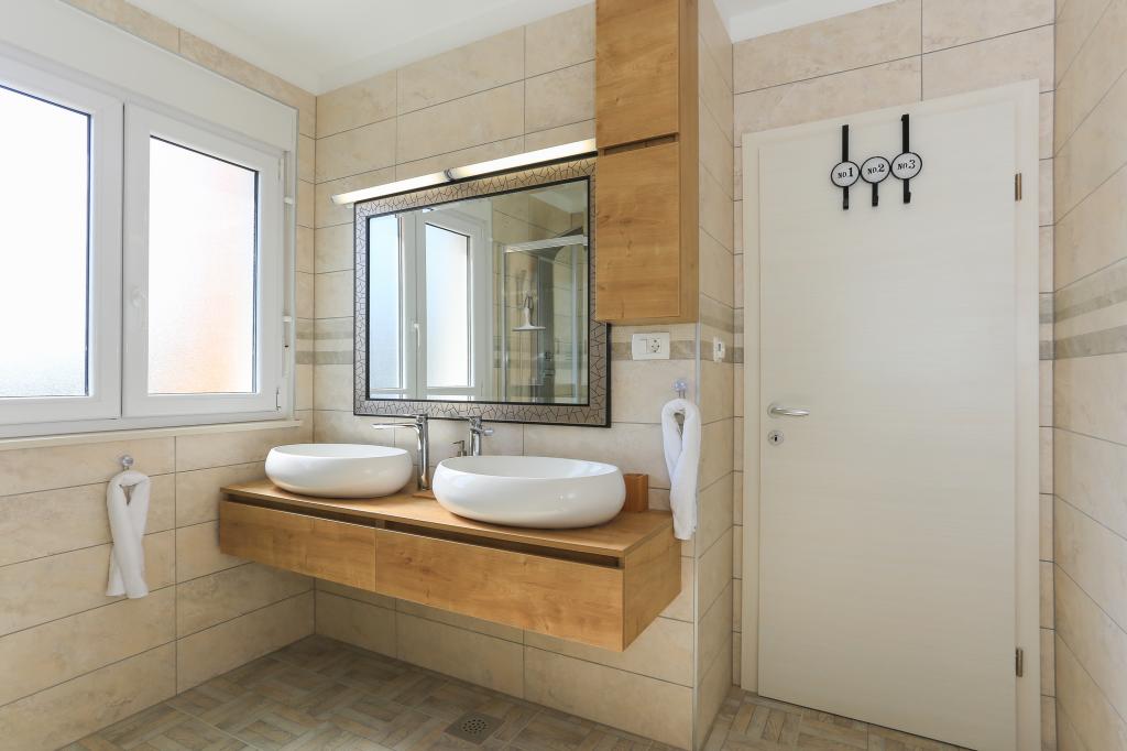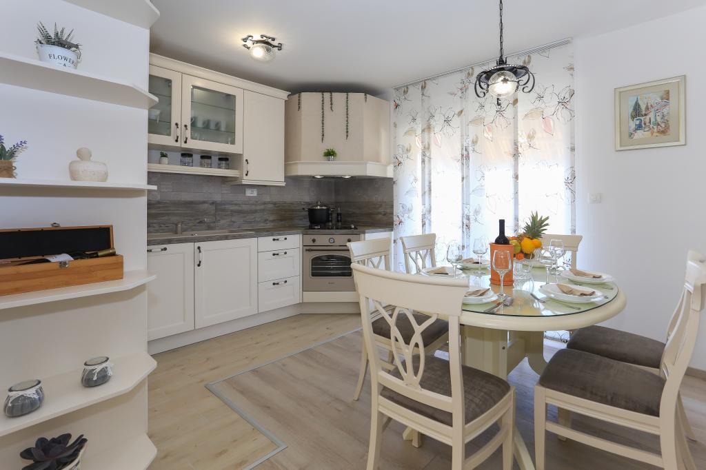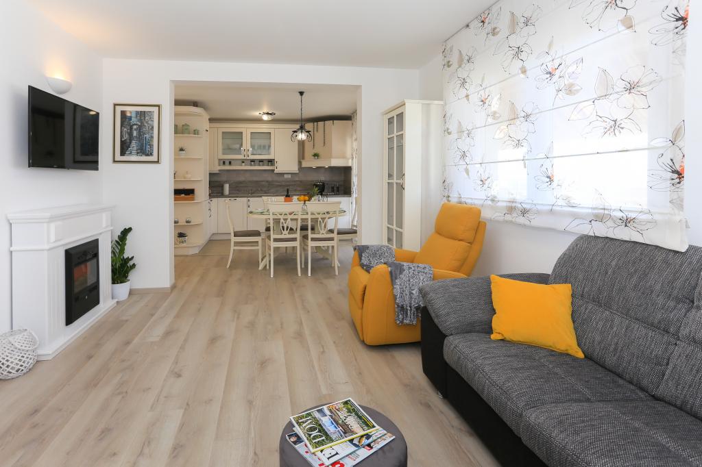 Dieses komplett neue Apartment liegt im Zentrum von Kastel Gomilica und ist bestens für Ihren komfortablen Aufenthalt ausgestattet. Nur wenige Minuten entfernt befindet sich die Marina Kaštela, ein Busbahnhof (100 m entfernt) mit direkten Verbindungen nach Split, zum Flughafen und nach Trogir. Der Bahnhof mit direkter Anbindung ans Stadtzentrum von Split (Stadthafen und Busbahnhof) ist nur 400 m entfernt und ideal für Ausflüge zu den umliegenden Inseln. Ein Kieselstrand mit Bars und weiteren Annehmlichkeiten (Trampolin, Schaukeln etc.) ist nur wenige Gehminuten vom Apartment entfernt. Dank des privaten Zugangs zum eigenen Parkplatz genießen Sie absolute Privatsphäre und Sicherheit. Das Apartment besteht aus einem großen Wohnzimmer mit angrenzender Küche und Essbereich (35 m²). Es verfügt über drei Schlafzimmer (zwei mit Doppelbetten – 1,6 x 2,0 m, das dritte mit einem großen Doppelbett (1,8 x 2,0 m) und einem Einzelbett (0,9 x 2,0 m). Die Wohnung verfügt außerdem über zwei Badezimmer mit Dusche. Sie befindet sich im zweiten Stock.