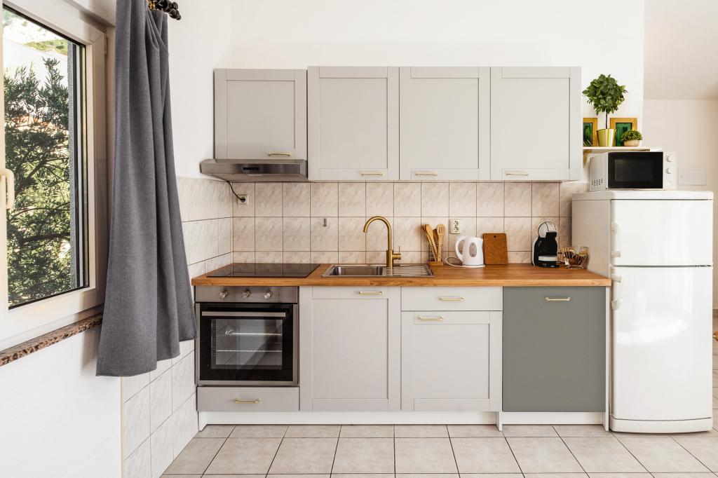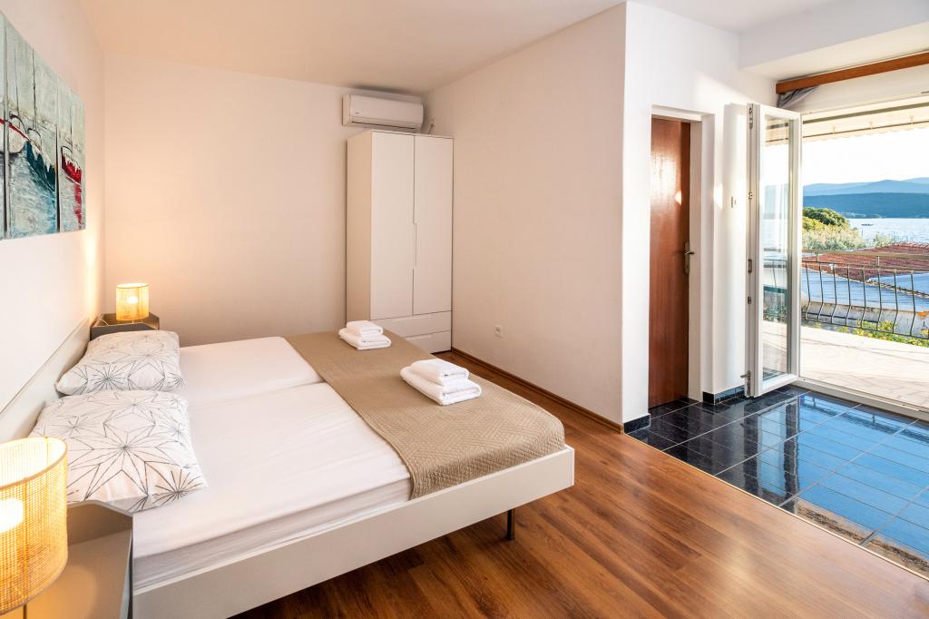 Eine der besten Unterkünfte, die wir in Kroatien hatten. Die Gastgeber sind sehr freundlich und zuvorkommend. Die Apartments sind wunderschön und bieten Meerblick. Parken im Hof des Hauses (wir waren zu dritt, 6 Erwachsene + 9 Kinder). Große schattige Pergola mit Kamin zum Grillen und Kochen im Freien. Daneben befindet sich auch ein Waschbecken mit Leitungswasser, die Zimmer sind komplett ausgestattet mit Bettwäsche, Handtüchern, Geschirr, Geschirrspüler, Waschmaschine, Kaffeemaschine. Direkt neben und unterhalb des Hauses befinden sich zwei Restaurants, von denen wir Essen in die Wohnung bringen können. Neben dem Haus im Hof gibt es auch einen Platz zum Abstellen von Liegestühlen und aufblasbaren Sonnenschirmen. Wirklich tolle Unterkunft für eine Familie mit Kindern, die alleine 50 Meter zum Strand laufen können.