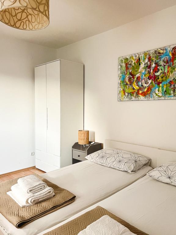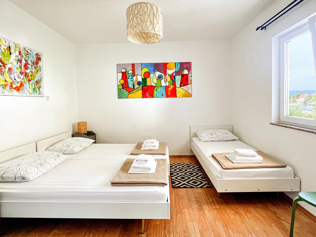 Perfekter Ort in sehr guter Lage (nur einen Schritt vom Strand entfernt). Einer der besten Orte, an denen wir in Kroatien waren. Die Wohnung verfügt über alles, was Sie im Urlaub brauchen, jedes Zimmer verfügt über ein Badezimmer und eine Klimaanlage sowie eine voll ausgestattete Küche mit Geschirrspüler. Drei Balkone mit Blick auf das Meer und die Strände. Gemauerter Grill mit Sitzgelegenheiten, Parkplätze (der Gastgeber kümmert sich um die Abdeckung des Autos, was ein großes Plus ist). Leckeres Olivenöl! Ich kann diesen Ort zum Entspannen nur wärmstens empfehlen