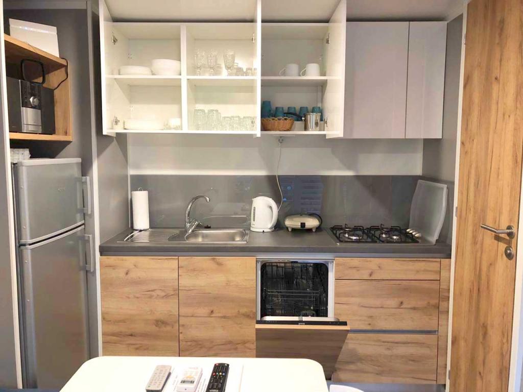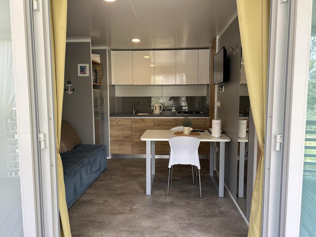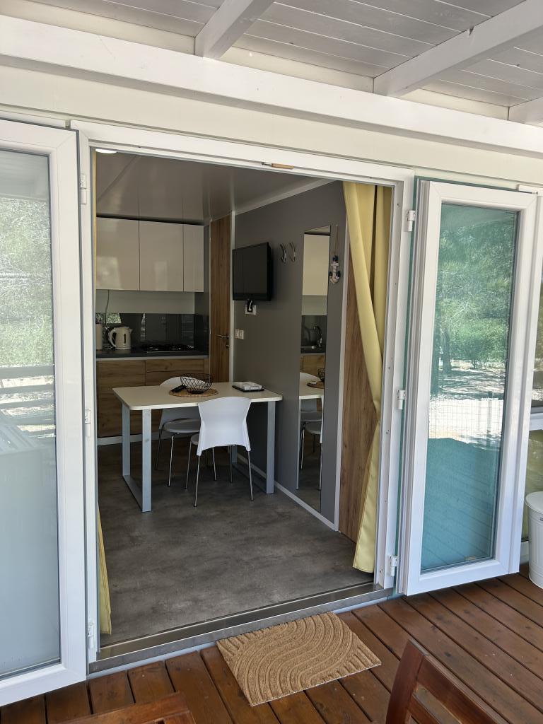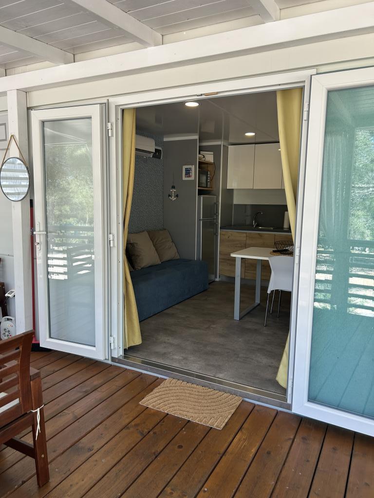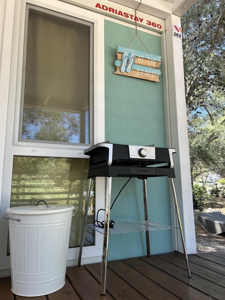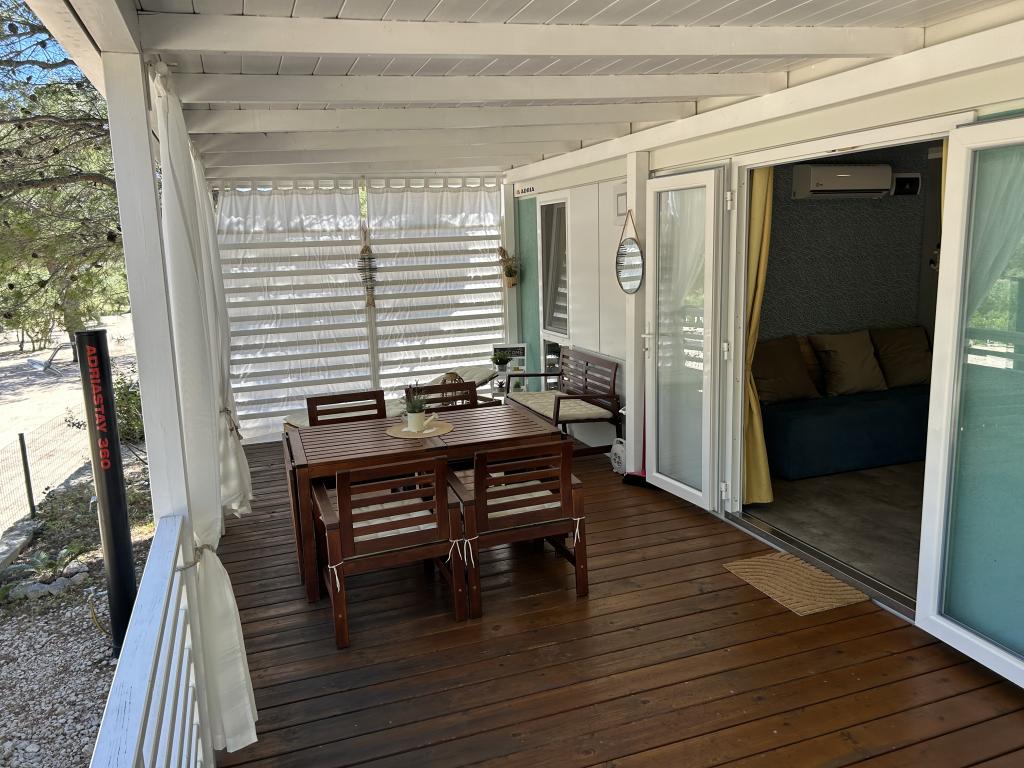 Adriastay 360 ist ein luxuriöses Mobilheim auf dem Campingplatz Klenovica, nur 100 m vom Strand entfernt. Genießen Sie den traumhaften Blick von der Terrasse auf das endlose Meer und die Insel Krk und erleben Sie einen unvergesslichen Sonnenuntergang. Neben dem nur 50 m vom Haus entfernten Schwimmbadkomplex bietet der Campingplatz einen Lebensmittelladen mit Bäckerei, die täglich frische Produkte anbietet. Das Restaurant Gastro Corner serviert Fisch- und Fleischgerichte sowie Pizza. Entlang des Strandes finden Sie Cafés mit erfrischenden Getränken und Eis. Wenn Sie gerne wandern, joggen oder Rad fahren, gibt es Wege zum Fischerdorf oder einen Küstenweg. Verbringen Sie mit Ihrer Familie, Ihrem Partner oder Ihren Freunden einen unvergesslichen Urlaub bei uns.