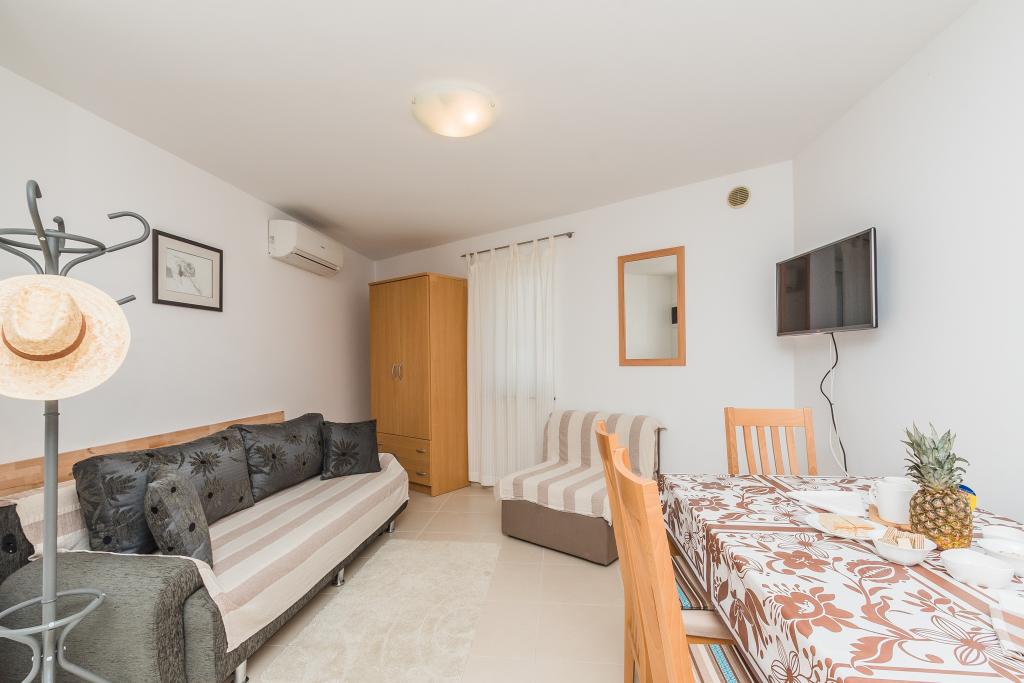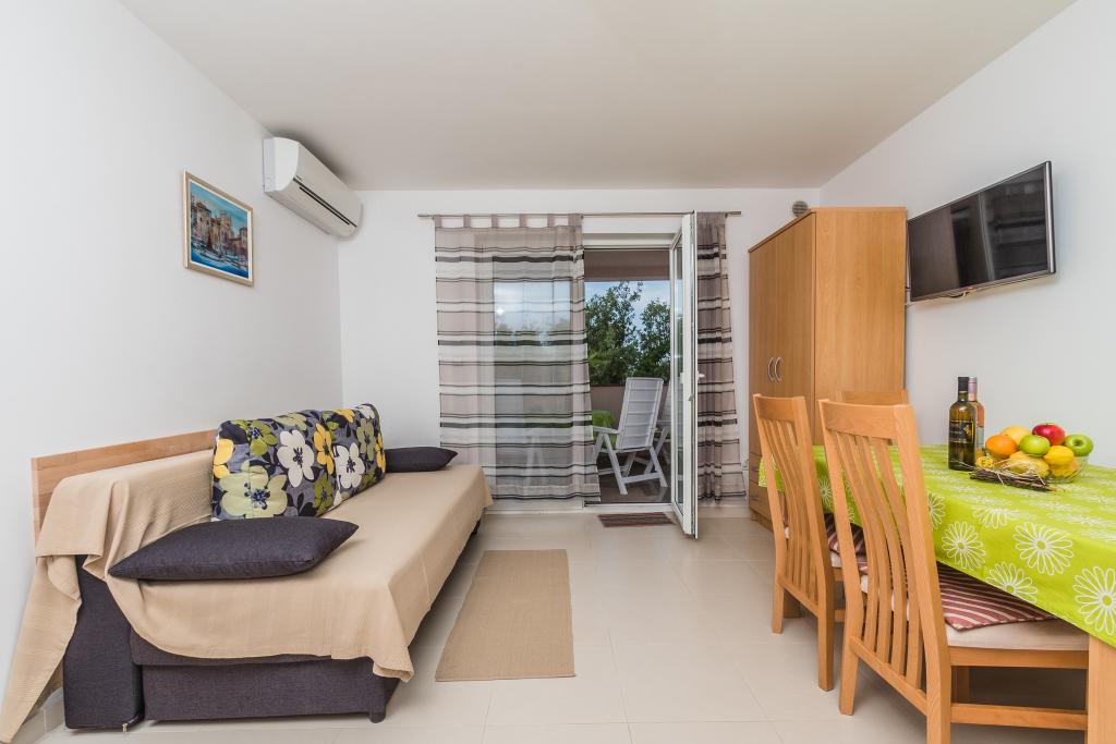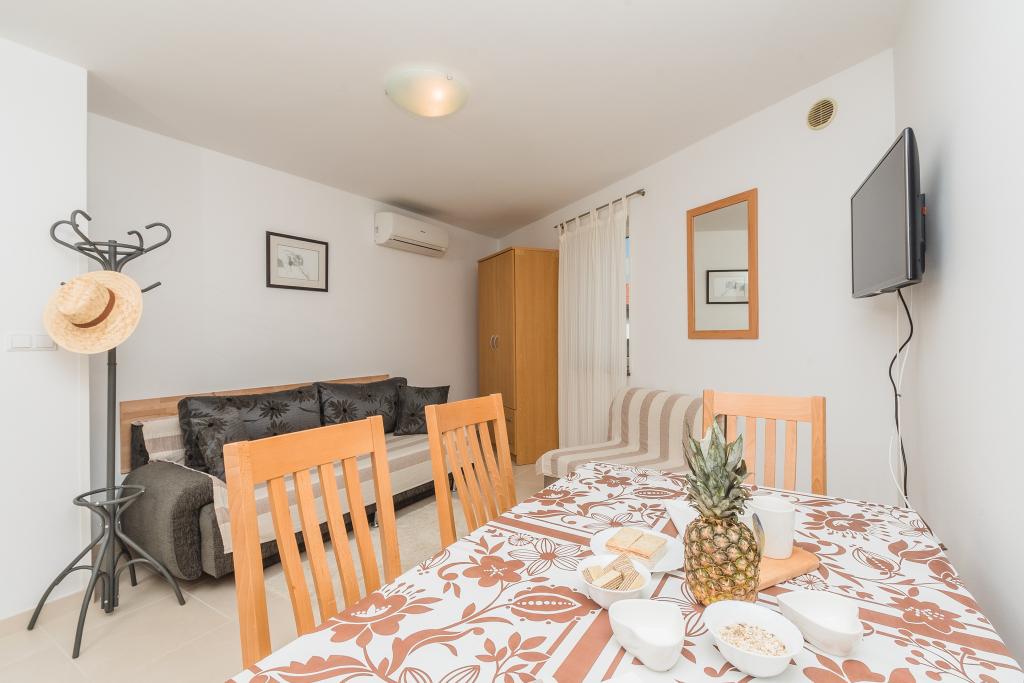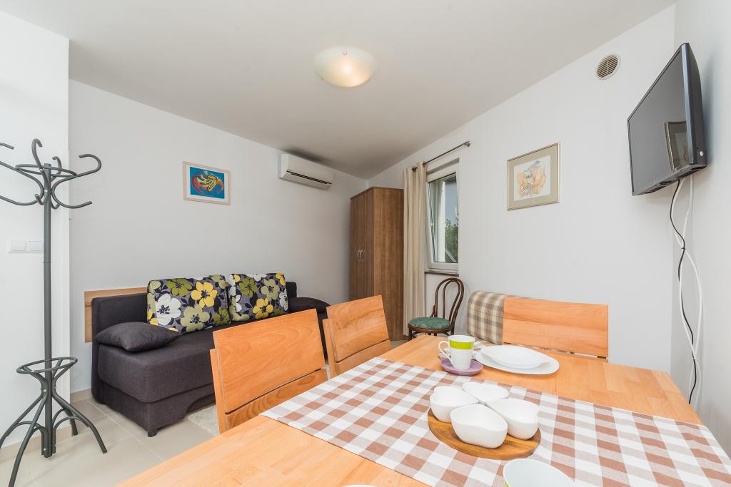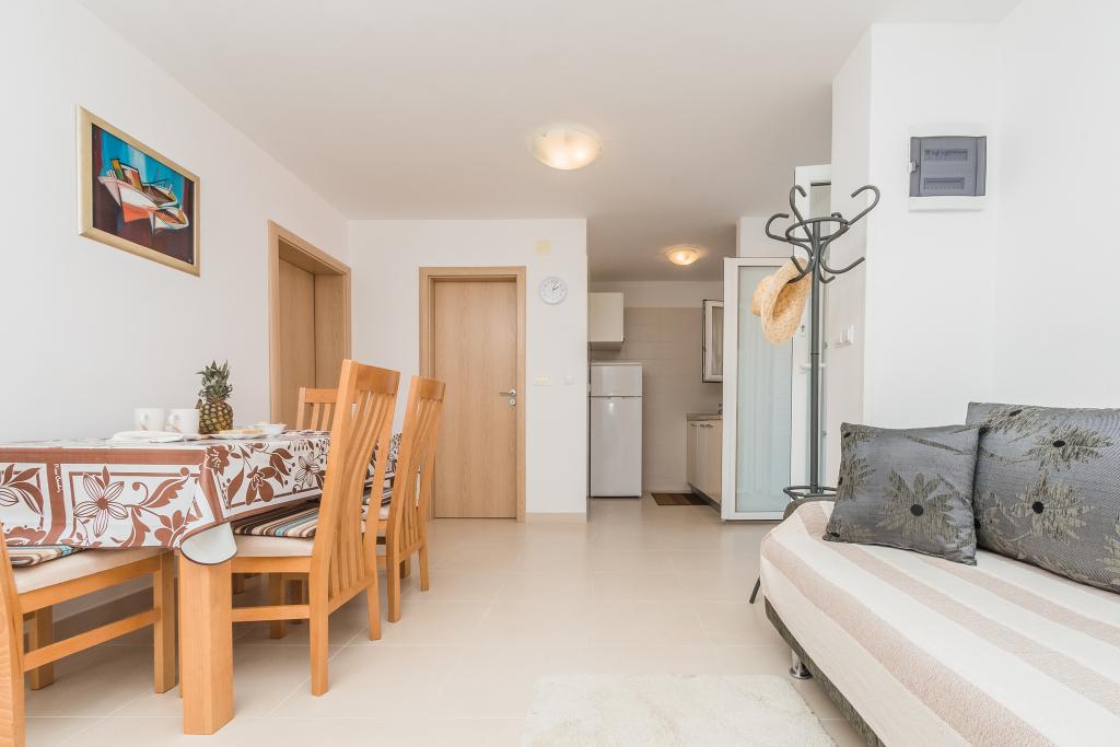 Im Dorf Klimno befindet sich ein Haus mit 4 Wohnungen in ruhiger und sonniger Lage, in einer Sackgasse. Entfernung vom Meer 200 m. Die Strände sind Kies- und Felsstrände. Zur Mitbenutzung von Grundstücken von 400 m2. Verfügbare Außendusche, Sonnenliegen, Grill, Terrasse 60 m2, Tisch und Bank. 1 Parkplatz pro Wohnung. Die Apartments Fenix 1 und Fenix 2 befinden sich im Hochparterre, die Apartments Fenix 3 und Fenix 4 im ersten Stock.