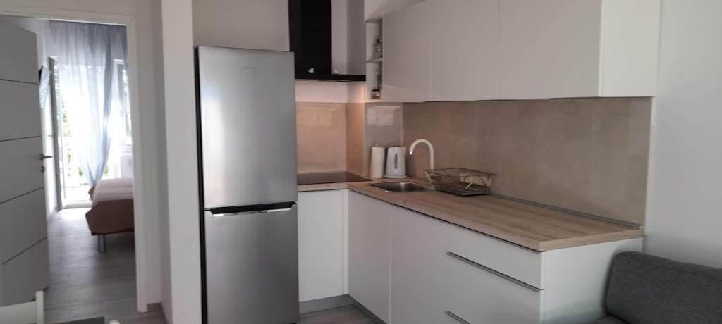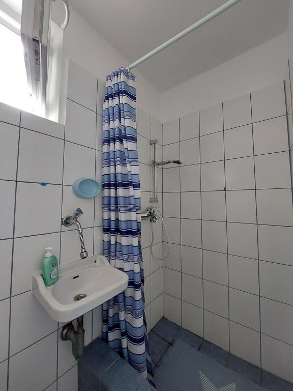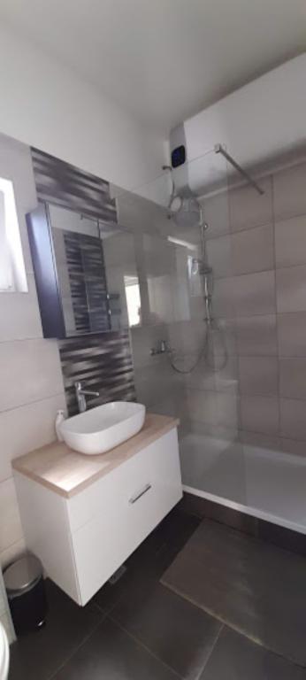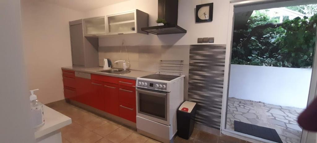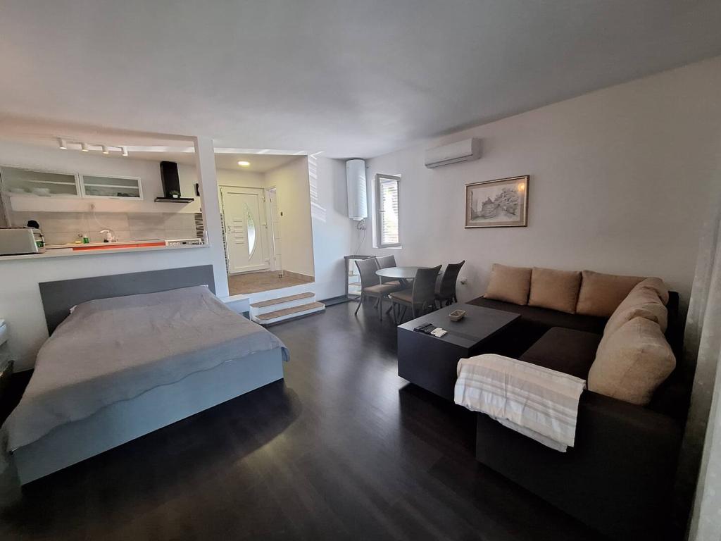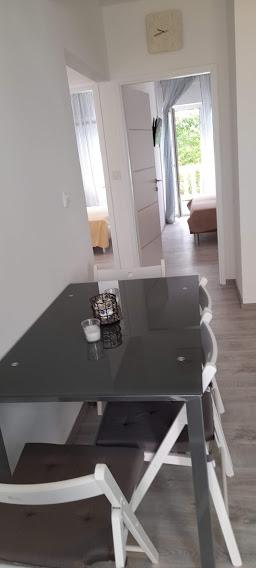 Unser Haus in Klimno in der Soline-Bucht, bekannt für ihren Heilschlamm und die Biserjuka-Höhle, besteht aus einem Studio-Apartment für 2 Personen im Erdgeschoss mit einer 20 m² großen Terrasse und einem Apartment im 1. Stock mit separatem Eingang und 2 Terrassen für 4 Personen mit 3 Sternen an einem ruhigen Ort inmitten der Natur. Wir verfügen über einen Garten mit einem Holzgrill, den Sie kostenlos nutzen können, und einer Außendusche. Wir sind 250 m vom Meer entfernt. Die große Wohnung verfügt über einen Eingangsbereich, ein Badezimmer mit großer Dusche, 2 Schlafzimmer mit jeweils einem Fernseher, einer Klimaanlage und Zugang zu einer Terrasse mit Tisch und Stühlen zum Sitzen und Liegestühlen, eine Küche mit einem Wohnzimmer mit Zugang zu einer weiteren Terrasse mit Sitzmöbeln. Das 50 m² große Studio-Apartment verfügt über ein kleines Badezimmer und eine Terrasse mit Tisch und Stühlen sowie einem Liegestuhl. Die Küchen in beiden Wohnungen verfügen über Kühlschrank, Gefrierfach, Mikrowelle, Glaskeramikkochfeld, Dunstabzugshaube, Toaster, Wasserkocher, Kaffeemaschine, sämtliches Besteck und einen Föhn. WLAN ist kostenlos. Haustiere auf Anfrage. Kostenlose Nutzung von Bettwäsche, Handtüchern, Klimaanlage.