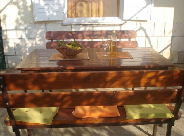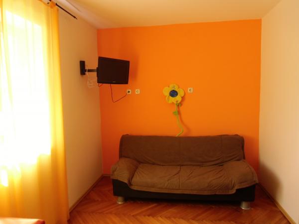Apartments Ana - Mari-Apartments sind 100 Meter vom Strand entfernt. Das Erdgeschoss ist ein Studio-Apartment Sun - 27m2 + Terrasse 10m2. Auf der ersten Etage sind: Marienkäfer-Wohnung 20 m2 + 7m2 Balkon und Wohnung Clover Studio - 25m2 + 7m2 Balkon. Im Erdgeschoss befindet sich der Palast mit einer großen Terrasse, wo Sie die Brise und den Duft des Meeres, im Schatten der Reben genießen können, und kochen auf dem Grill.