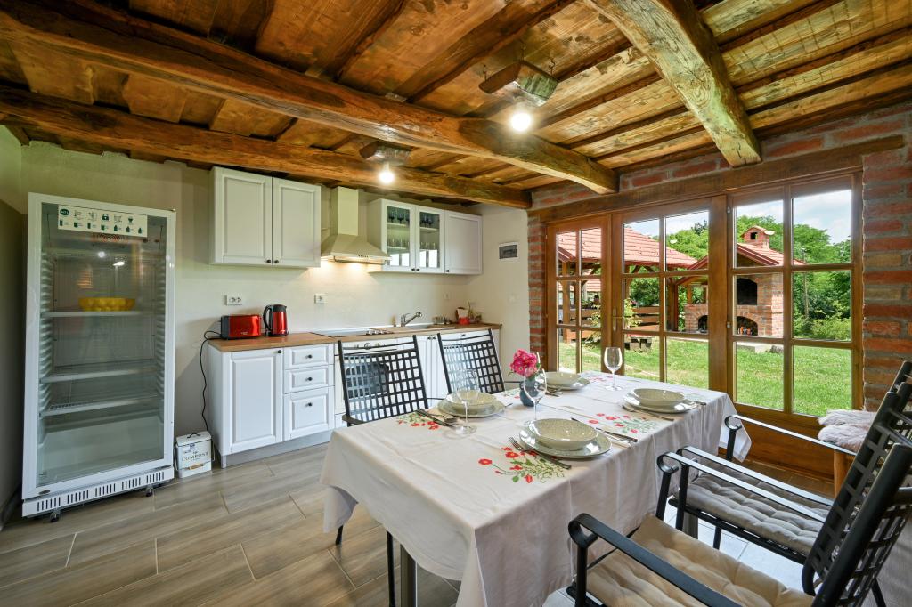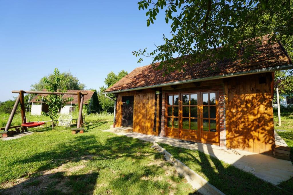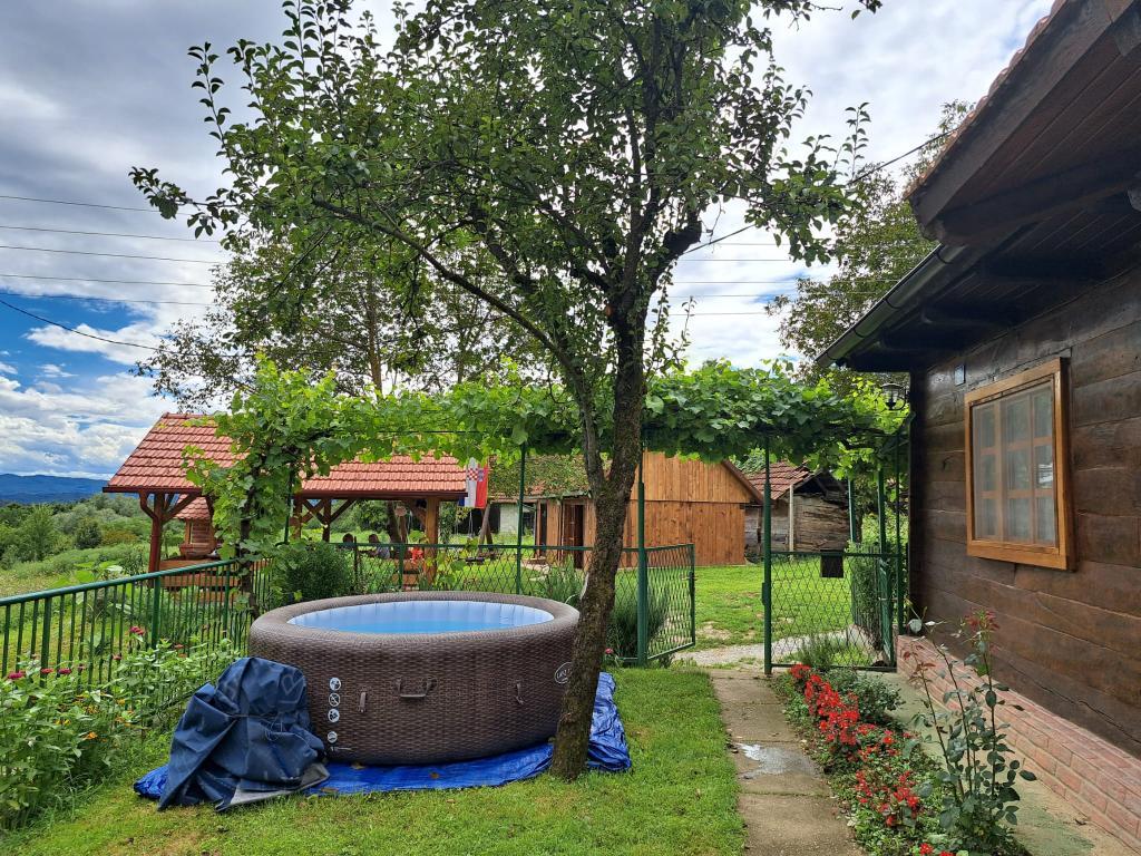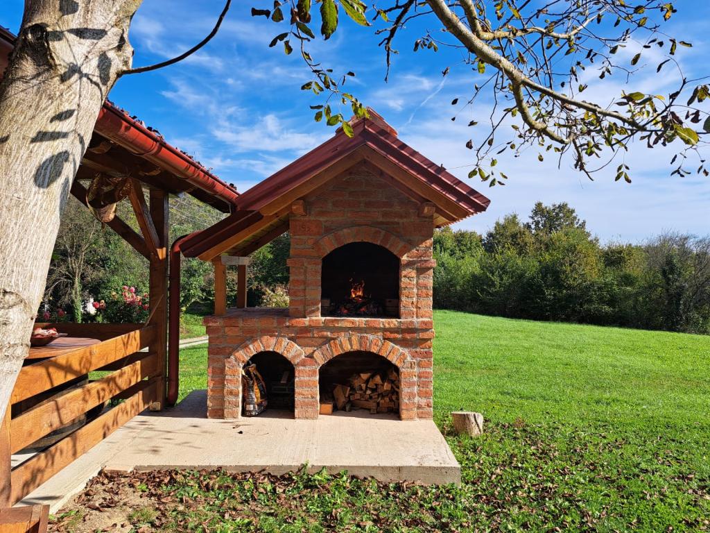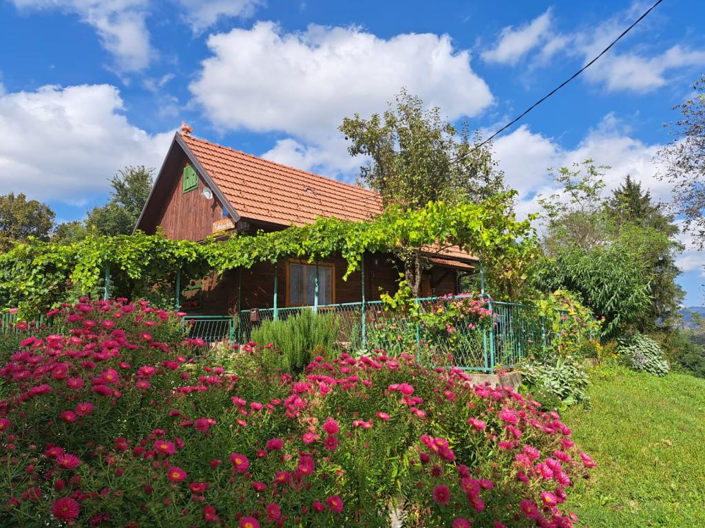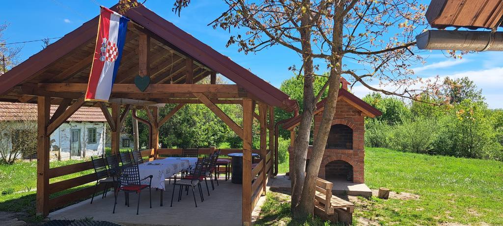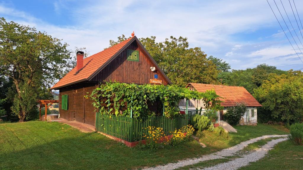 Das Ferienhaus Kokotova hiža befindet sich im kleinen Dorf Klimen im kroatischen Zagorje. Es besteht aus vier Holzgebäuden, einem Haus von 55 m2, einem Pavillon von 20 m2 mit gemauertem Grill und einem Gebäude mit einem Pavillon von 20 m2, einem Pavillon mit Whirlpool für 5 bis 7 Personen, kostenlosen Parkplätzen, Evo-TV, WLAN, ein Kinderspielplatz, Schaukeln für Erwachsene und Kinder, ein Blick auf den Berg Ivanščica auf der einen Seite und auf den Berg Medvednica auf der anderen Seite. Der umzäunte Hof des Hauses ist ideal für Haustiere. Hof von 700m2. Das Haus besteht aus einer Küche, einem Badezimmer und einem Wohnzimmer im Erdgeschoss sowie einem Schlafzimmer im Dachgeschoss mit drei Betten. Im Wohnzimmer gibt es ein Klappsofa für zwei Personen. Im Stall gibt es einen Raum zum geselligen Beisammensein und ein Badezimmer. Das Haus liegt abgelegen am Waldrand und ist ideal für den Urlaub sowie für die Bewirtung einer größeren Gruppe.