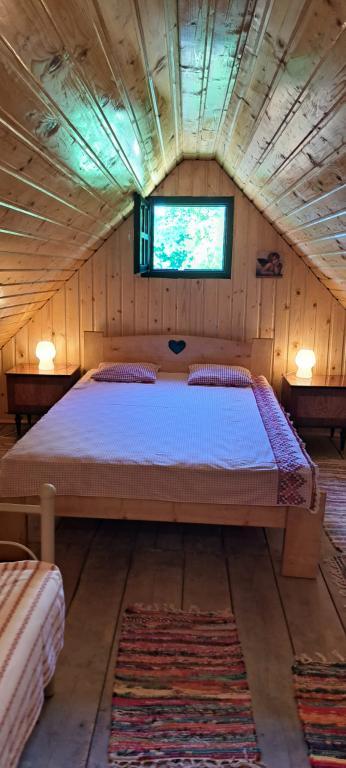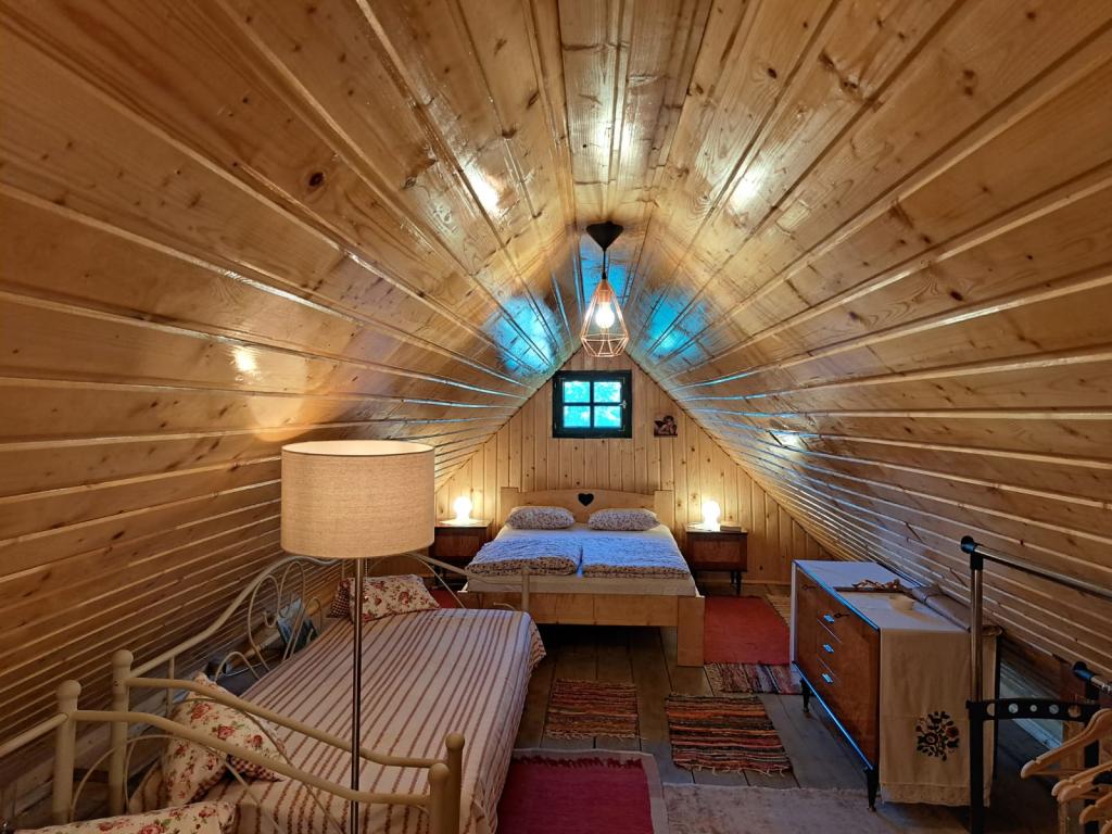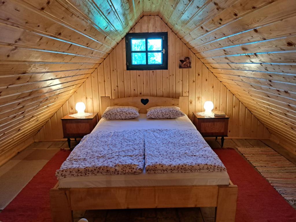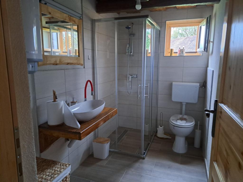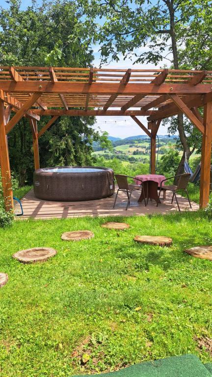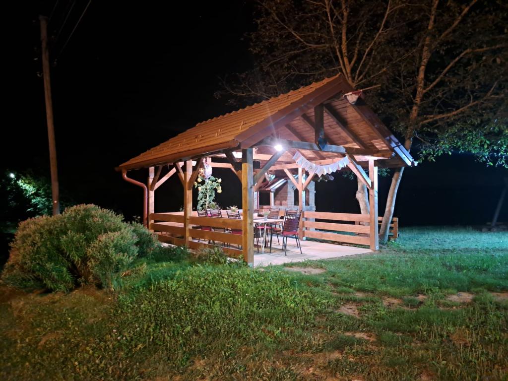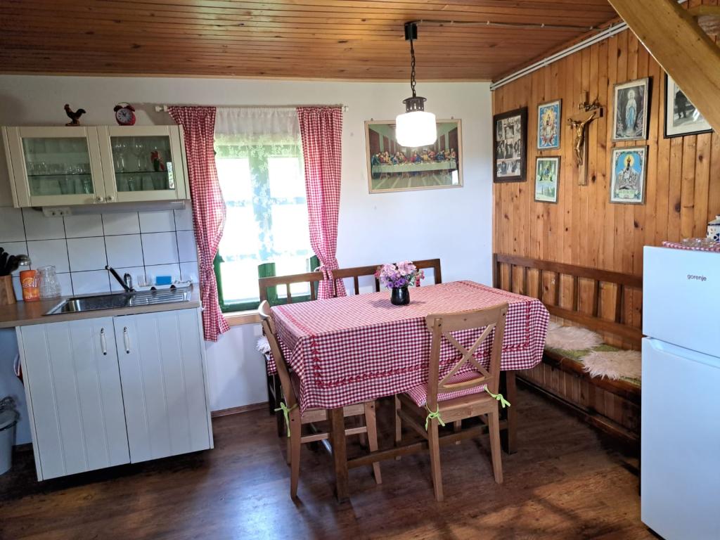 Das Ferienhaus Kokotova hiža befindet sich im kleinen Dorf Klimen im kroatischen Zagorje. Es besteht aus vier Holzgebäuden, einem Haus von 55 m2, einem Pavillon von 20 m2 mit gemauertem Grill und einem Gebäude mit einem Pavillon von 20 m2, einem Pavillon mit Whirlpool für 5 bis 7 Personen, kostenlosen Parkplätzen, Evo-TV, WLAN, ein Kinderspielplatz, Schaukeln für Erwachsene und Kinder, ein Blick auf den Berg Ivanščica auf der einen Seite und auf den Berg Medvednica auf der anderen Seite. Der umzäunte Hof des Hauses ist ideal für Haustiere. Hof von 700m2. Das Haus besteht aus einer Küche, einem Badezimmer und einem Wohnzimmer im Erdgeschoss sowie einem Schlafzimmer im Dachgeschoss mit drei Betten. Im Wohnzimmer gibt es ein Klappsofa für zwei Personen. Im Stall gibt es einen Raum zum geselligen Beisammensein und ein Badezimmer. Das Haus liegt abgelegen am Waldrand und ist ideal für den Urlaub sowie für die Bewirtung einer größeren Gruppe.