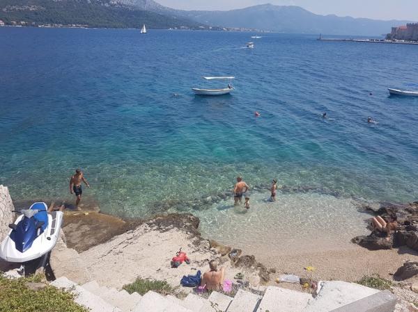 Apartments in toller Lage direkt am Strand, umgeben von Grün, komplett ausgestattet, mit Swimmingpool, herrlichem Blick von allen Zimmern auf das Meer und Korcula. Extrem sauber, sehr nette Gastgeber. Wir kommen zum dritten Mal für einen angenehmen Urlaub zurück.