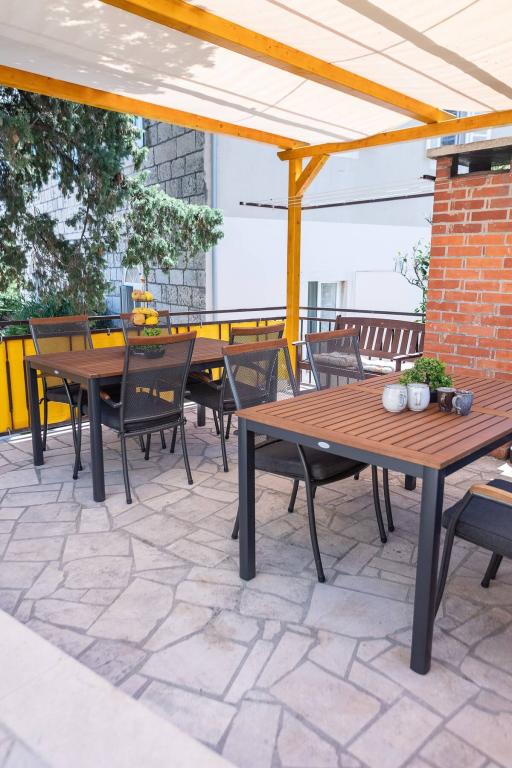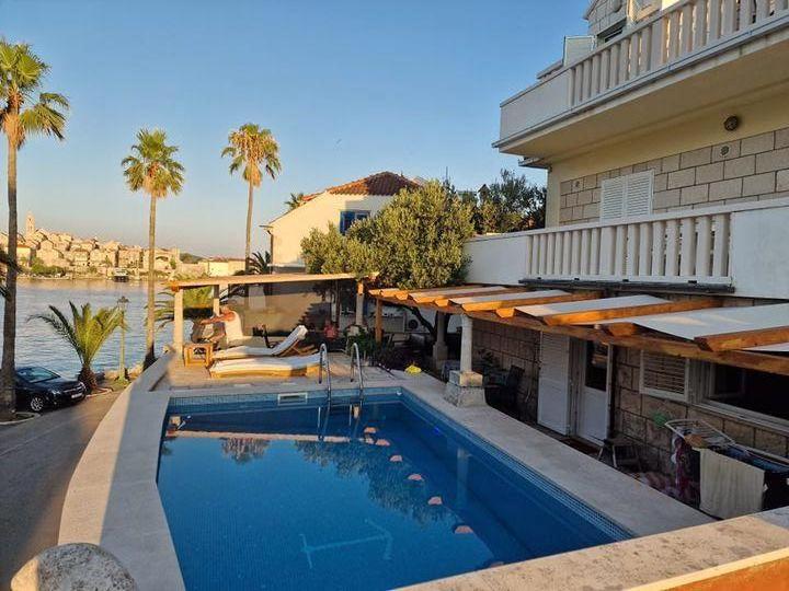 Apartment ID 759 bietet 86 m² Wohnfläche. Es ist luxuriös eingerichtet und befindet sich in einer wunderschönen Gegend von Korčula direkt am Meer. Das Apartment verfügt über einen eigenen Pool, zwei große Terrassen und eine Sonnenterrasse. Es bietet alles, was Sie für einen gelungenen Urlaub benötigen: zwei Klimaanlagen, ein großes Badezimmer, zwei Fernseher, einen komfortablen Wohnbereich, zwei Schlafzimmer und einen eigenen Parkplatz. Das Stadtzentrum erreichen Sie in nur 5 Gehminuten, den Strand in 2 Minuten. Auf der Terrasse steht ein Grill zur Verfügung. Zur Ausstattung gehören außerdem Waschmaschine und Trockner, Geschirrspüler, zwei Kaffeemaschinen, Toaster, Entsafter etc. Die Apartments sind modern und komplett ausgestattet und befinden sich in ruhiger Lage in Korčula, in erster Reihe zum Meer. Die Anlage ist nur 5 Gehminuten vom Stadtzentrum entfernt, Strand und Parkplatz befinden sich direkt vor der Tür. Die Apartments und Zimmer ID 760 und ID 761 sowie die Zimmer ID 5589 und ID 5599 sind luxuriös ausgestattet. Die Terrasse auf der Rückseite ist ebenfalls mit einer Pergola und einem Sonnensegel überdacht. Sie verfügen über einen eigenen Parkplatz. Parkplätze stehen ausschließlich den Wohnungseigentümern zur Verfügung.