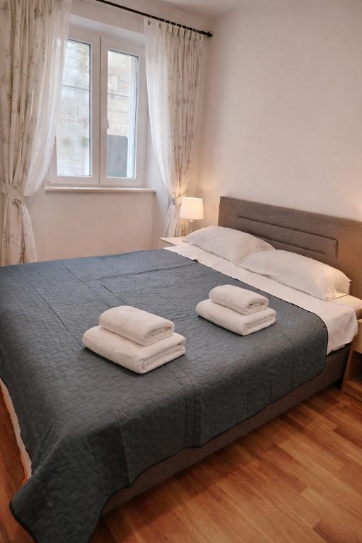 Vollständig und modern ausgestattete Ferienwohnung in der Altstadt von Korčula. Die Wohnung verfügt über zwei Schlafzimmer, zwei Badezimmer, eine Waschmaschine und einen Geschirrspüler. Zur Ausstattung gehören außerdem eine Kaffeemaschine, eine Mikrowelle und alles, was Sie für einen entspannten Urlaub benötigen. Vor der Wohnung befindet sich eine Terrasse, auf der Sie abends bei einer Tasse Kaffee den Blick über Korčula schweifen lassen können. Ein privater Parkplatz unter der Wohnung ist ein weiterer Pluspunkt für unsere Gäste.