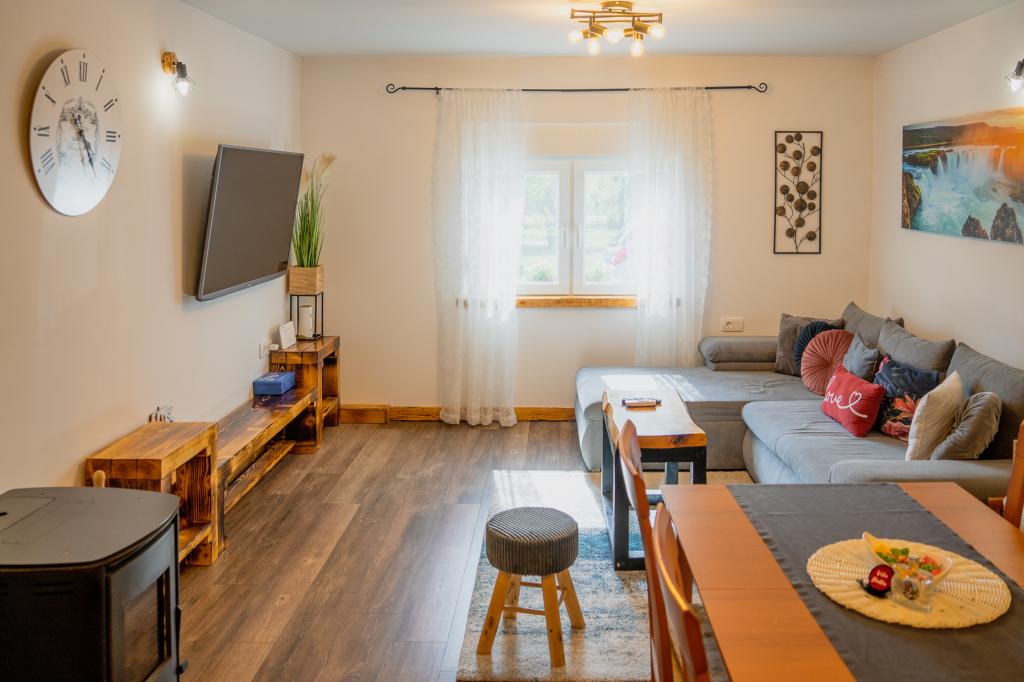 Entdecken Sie die Schönheiten von Lika und den Plitvicer Seen (Barac-Höhlen, Rafting auf dem Fluss Una, Željava...) und entspannen Sie in unserem Ferienhaus. Das 3-Sterne-Ferienhaus Vila Bella bietet alles, was Sie für einen perfekten Urlaub brauchen. Das Haus mit einer Kapazität von 4+2 Personen, einem großen umzäunten Garten und Blick auf Plješevica garantiert den Urlaub, den Sie sich wünschen und verdienen. Es befindet sich in Bjelopolje (Korenica), nur 15 Autominuten vom Eingang zum Nationalpark Plitvicer Seen und 45 Minuten von Zadar entfernt. Das Haus verfügt über zwei Schlafzimmer mit Bad und eine große offene Küche und ein Wohnzimmer. Zur Ausstattung gehören außerdem: - WLAN - Smart-TV mit Netflix - Sauna - Whirlpool - Kinderspielplatz - großer Swimmingpool - Taverne mit Grill und Überdachung - Geschirrspüler - Waschmaschine/Trockner - Klimaanlage - Mini-Fitnessraum mit Tischfußball und Darts