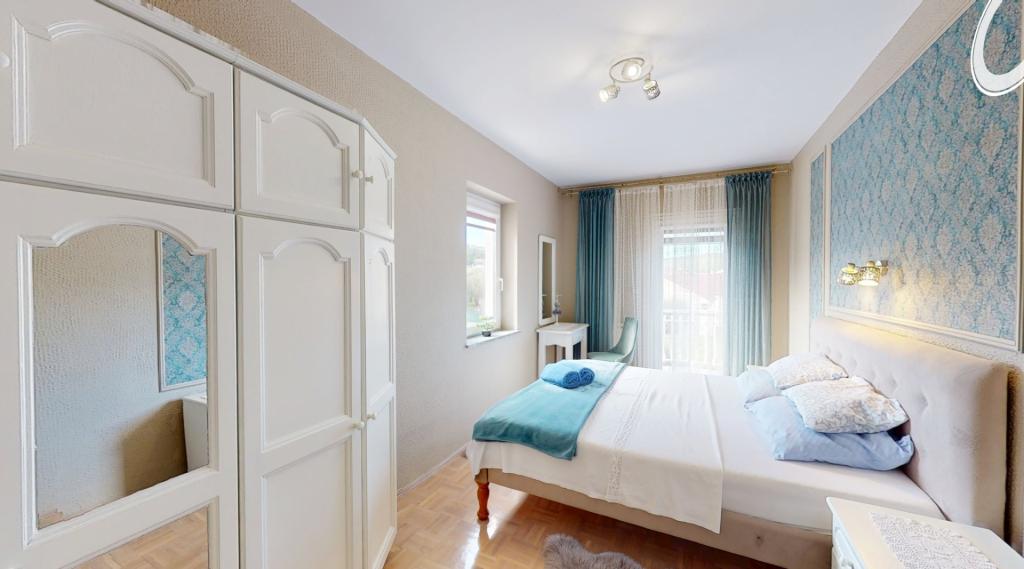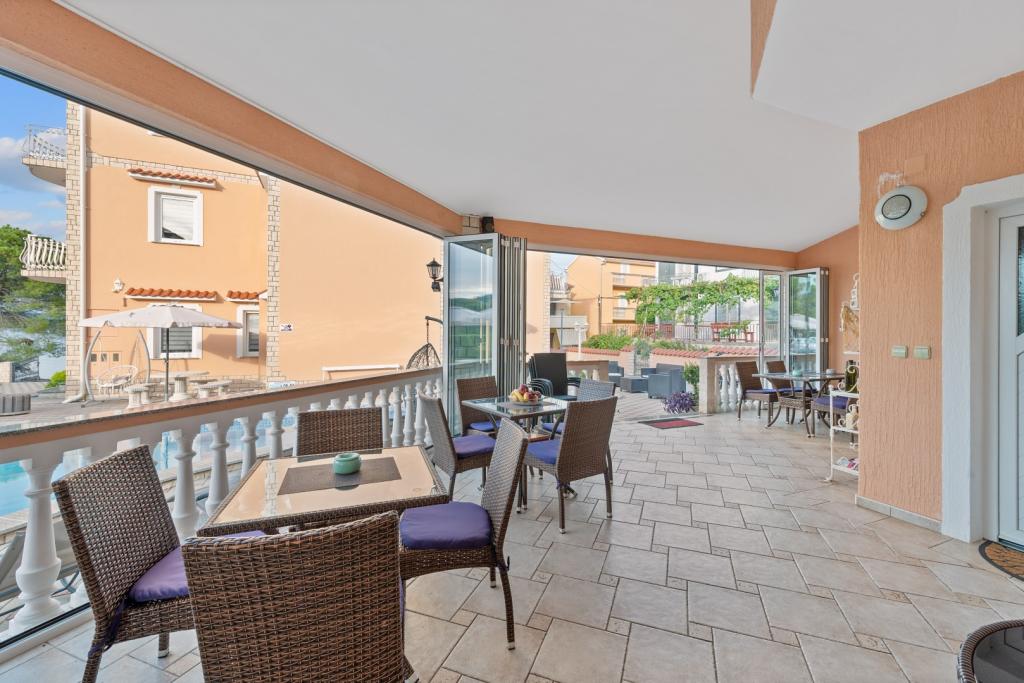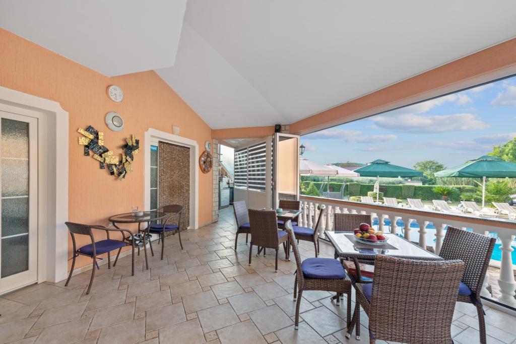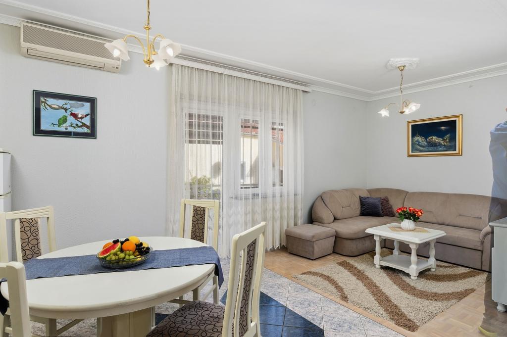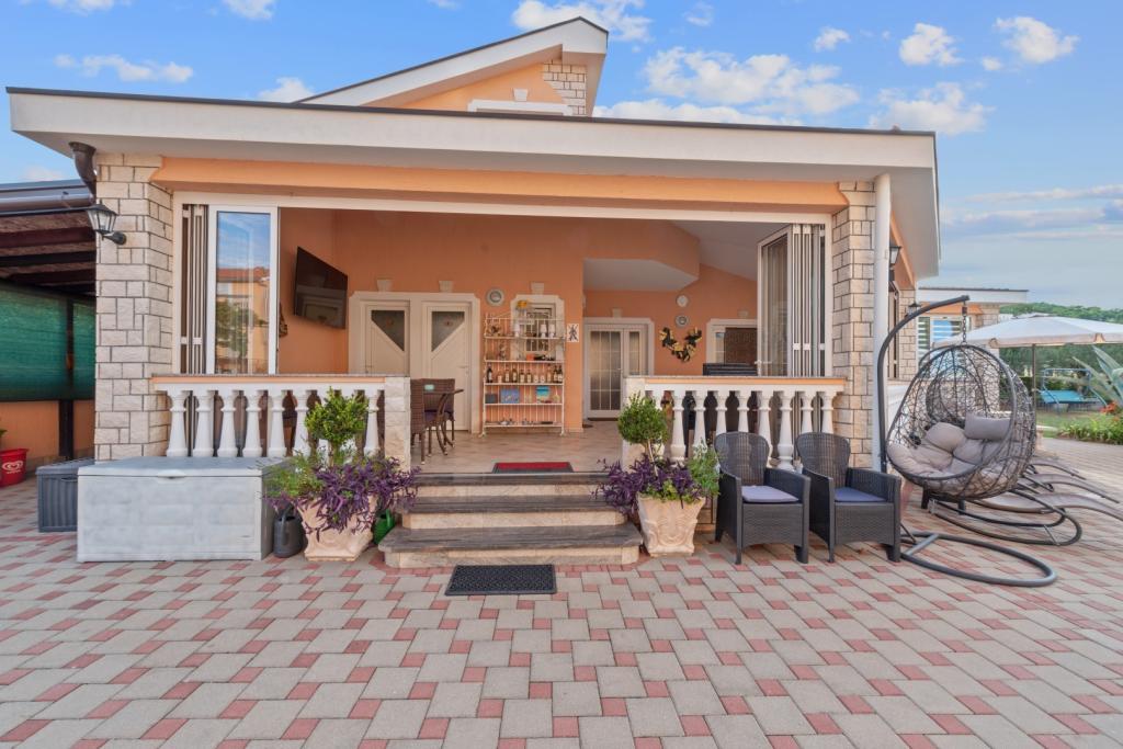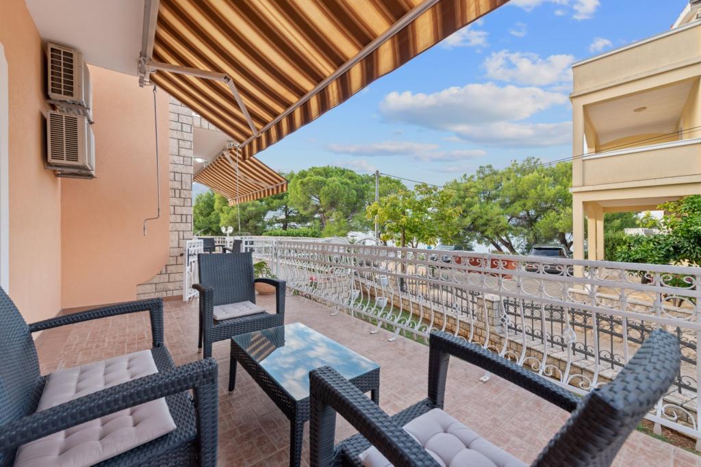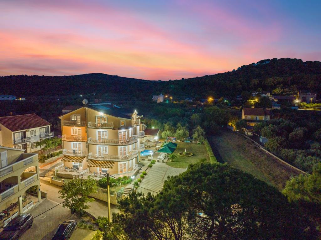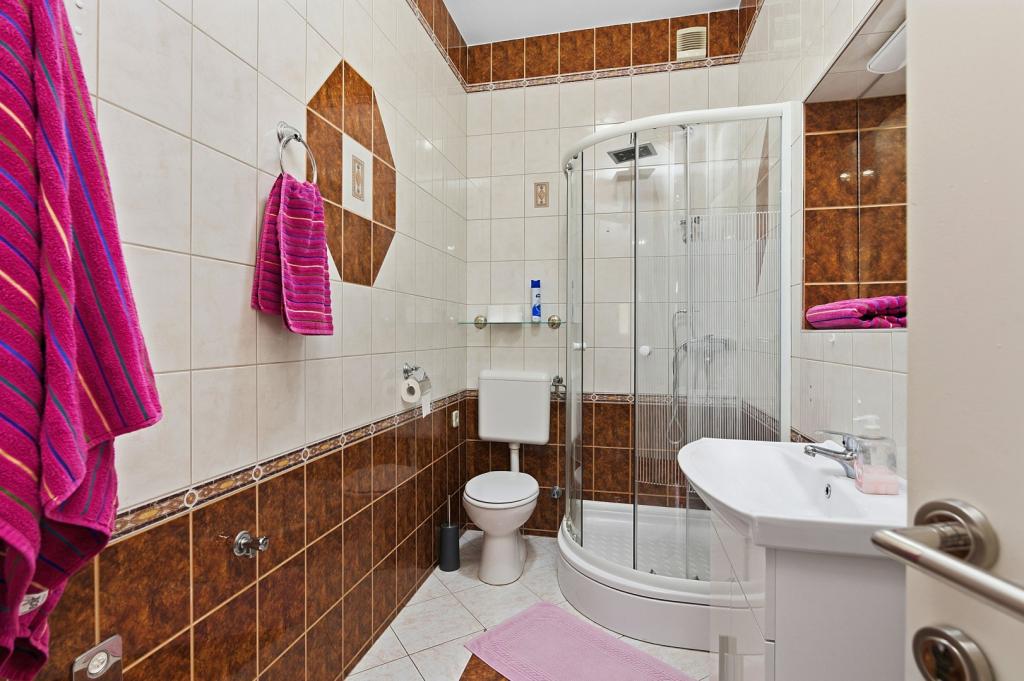 Crown Villa ist ein luxuriöses 4-Sterne-Unterkunft, die 30 Personen aufnehmen können. Villa ist der erste in einer Reihe, in einer wunderschönen Lage am Sandstrand mit Blick auf den Pasman Kanal eingestellt. Garten mit üppiger mediterraner Vegetation rund um das Haus und macht es besonders attraktiv. Im Garten befindet sich ein beheizbarer Pool mit Beleuchtung. Die Villa verfügt über 7 geräumige Suiten, die alle in besonderer Weise gestaltet. Jede Wohnung hat einen eigenen Balkon oder eine Terrasse mit Blick auf das Meer, den Strand und Garten-Villen.