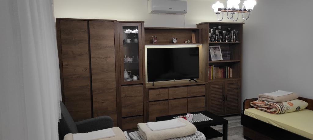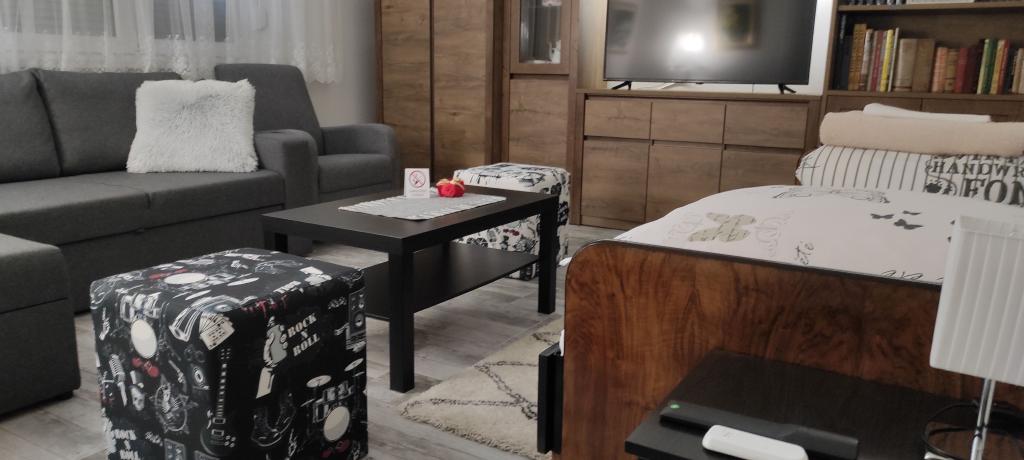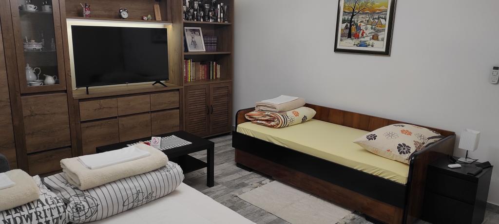 Vollständig und modern ausgestattete Wohnung (Klimaanlage, Fußbodenheizung, LED-Beleuchtung + Industriebeleuchtung mit Fernbedienung, 2 Fernseher 50", kostenloses WLAN usw.) für 1 - 5 Personen + ein Zustellbett für eine Person. TP Die Wohnung befindet sich im Zentrum von Križevci, in der Hauptstraße der Altstadt, und Geschäfte und Restaurants sind in der Nähe! Alles, was Sie brauchen (Geschäfte, Restaurants, Café-Bars, Geldautomaten, Bank, Apotheke, Sehenswürdigkeiten, Museen, Galerien, Stadtschwimmen). Schwimmbäder, Sportplätze) sind zu Fuß in wenigen Minuten erreichbar. Das Personal spricht: Englisch, Kroatisch