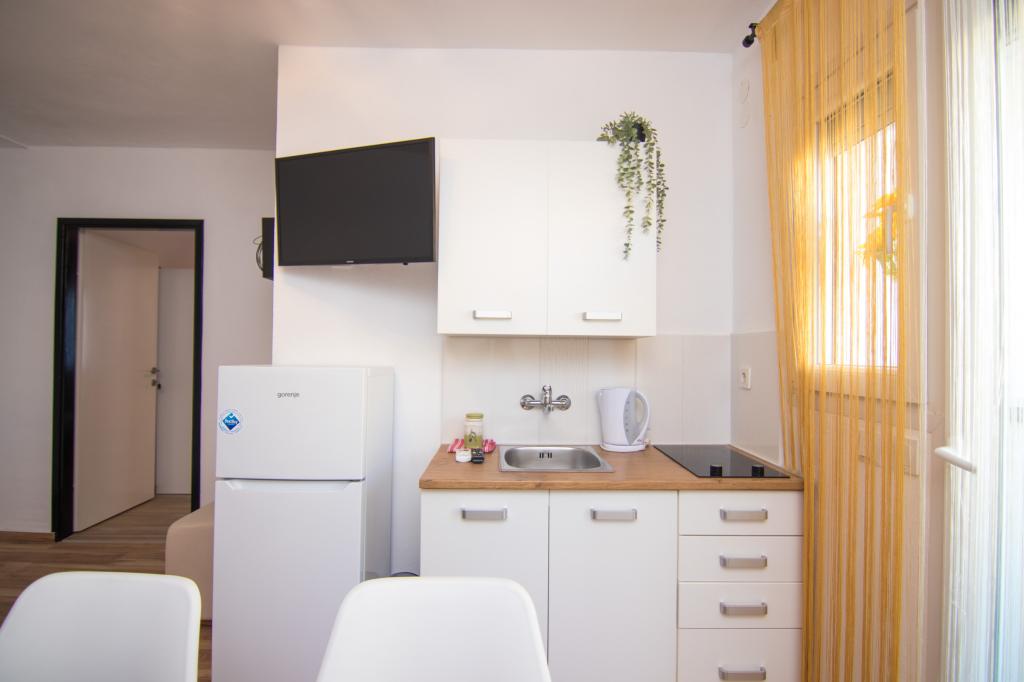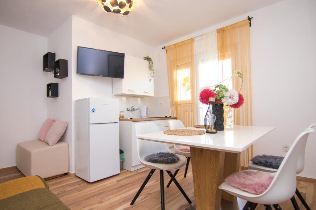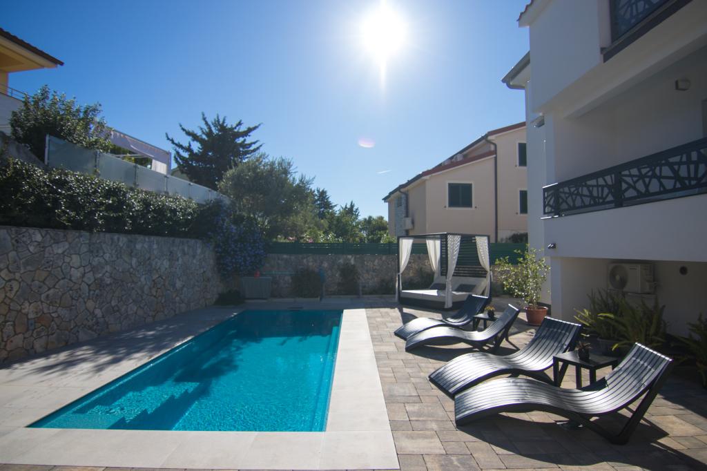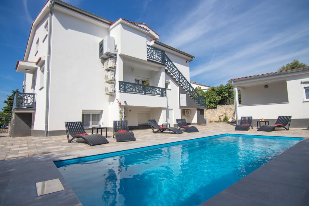 Dieses wunderschöne Anwesen befindet sich in exzellenter Lage, nur 400 Meter vom Strand und etwa 500 Meter vom Eingang zur Altstadt von Krka entfernt. Es ist somit die ideale Wahl für Gäste, die die Kombination aus Meer, Geschichte und städtischem Flair genießen möchten. Das Anwesen bietet einen fantastischen beheizten Swimmingpool mit Liegewiese, ideal zum Entspannen und Verweilen. Einige Unterkünfte bieten einen herrlichen Meerblick und geräumige Terrassen, andere verfügen über Balkone oder liegen direkt am Pool und sind somit perfekt für Gäste, die die Nähe zu Annehmlichkeiten schätzen. Alle Unterkünfte sind mit Privatparkplatz, Sat-TV, kostenlosem Internetzugang, Wasserkocher und Filterkaffeemaschine ausgestattet und garantieren so einen komfortablen und praktischen Aufenthalt.