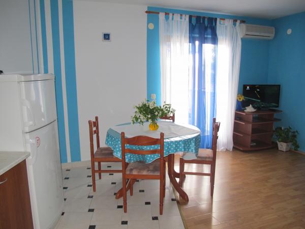 Die Apartments befinden sich in einem ruhigen Stadtteil, nur 10 Gehminuten vom Zentrum und 2 Minuten vom Strand entfernt. Sie bestehen aus einem Flur, einem Badezimmer, einem Schlafzimmer mit Doppelbett, einem geräumigen Wohnzimmer mit einem Zustellbett für zwei Personen und einer Küche. Die Terrasse von Apartment Nr. 1 bietet Meerblick, und die Terrasse von Apartment Nr. 2 hat Zugang zum Garten. Die Apartments sind mit allem ausgestattet, was Sie für einen angenehmen Aufenthalt benötigen. Wir sind rund um die Uhr für Sie da. Zu jedem Apartment gehört ein sicherer Parkplatz.