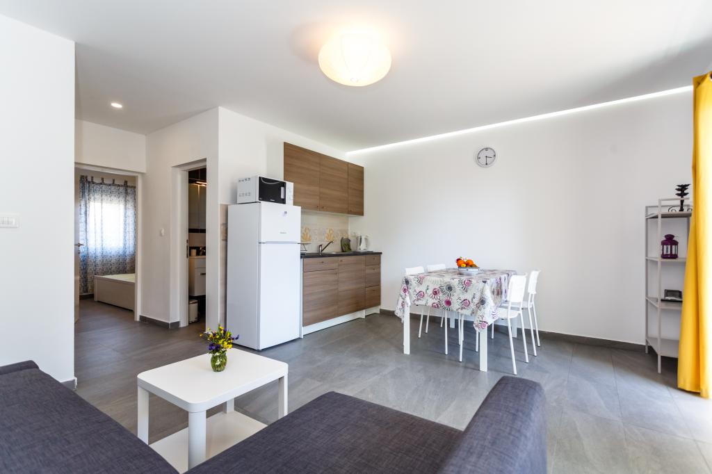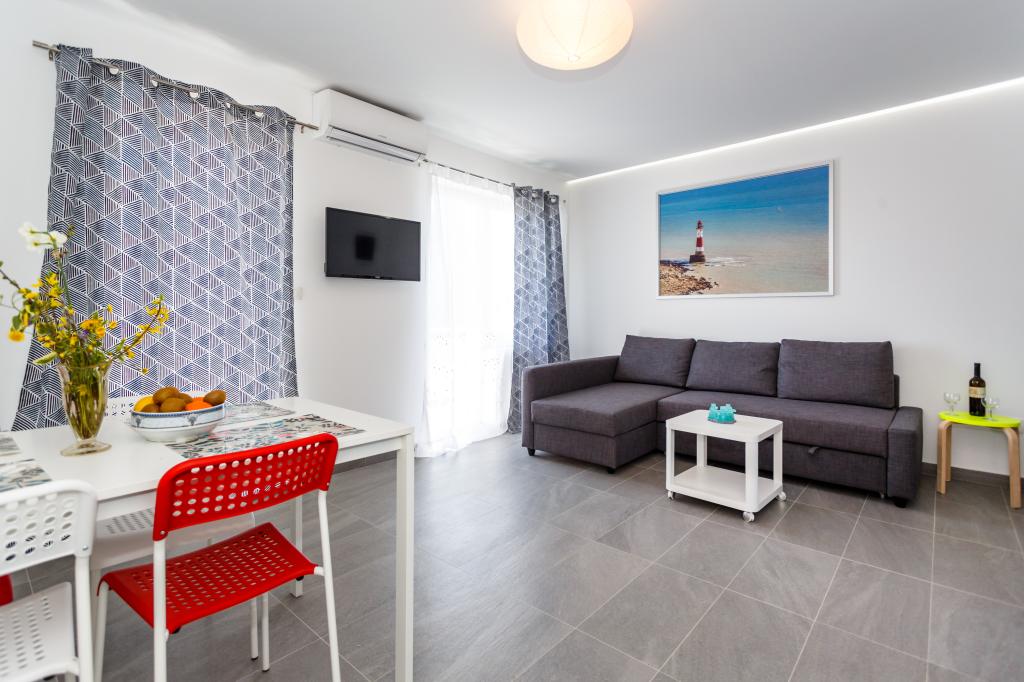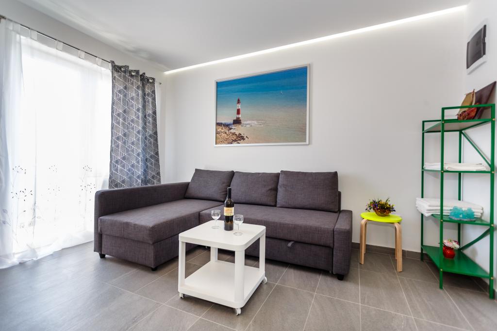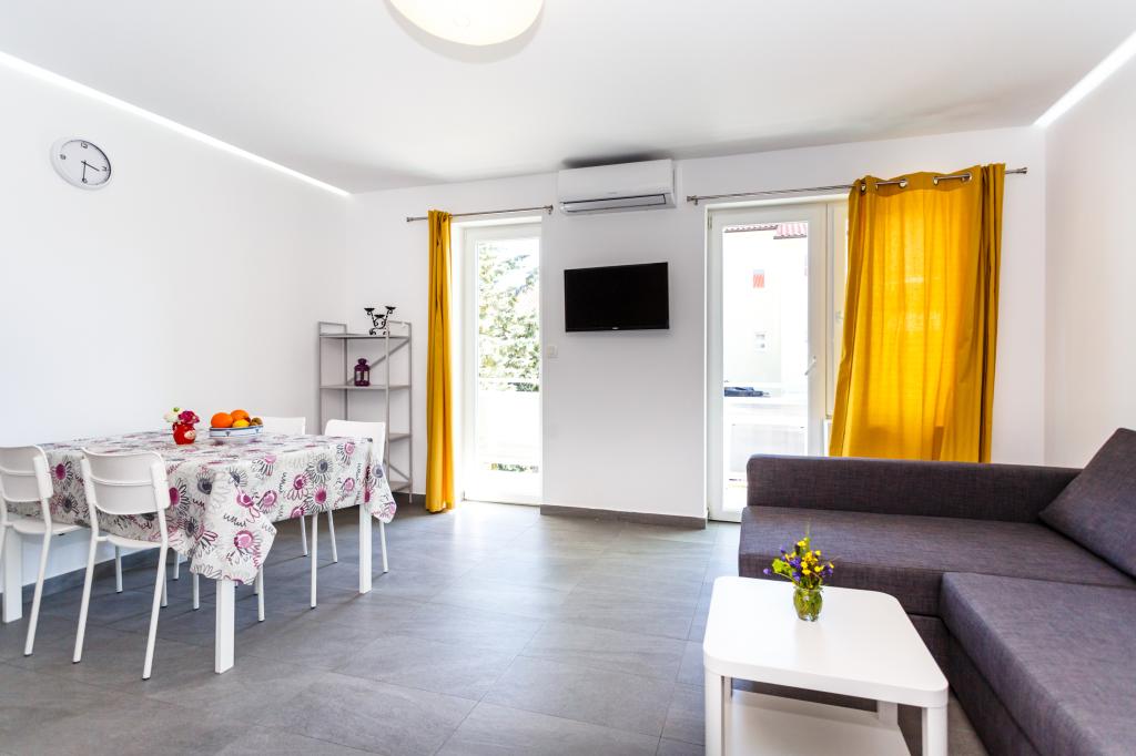Gruß! :) Dies ist unser brandneues Apartment in der Nähe des Zentrums von Krk (ca. 5 Gehminuten). Die Wohnung verfügt über ein Schlafzimmer mit einem Doppelbett, ein Wohnzimmer mit einem Sofa, das in ein Doppelbett umgewandelt werden kann, eine Küche und ein Badezimmer mit den notwendigen Accessoires. Es verfügt außerdem über einen Balkon, auf dem Sie zu jeder Tageszeit die Sonne genießen können. Wir bieten kostenlose Parkplätze im Schatten, kostenlose Klimaanlage, Smart-TV mit Netflix, BBQ-Grill im Garten neben der Wohnung und kostenloses WLAN.