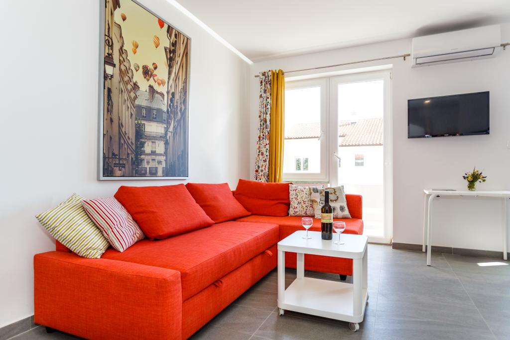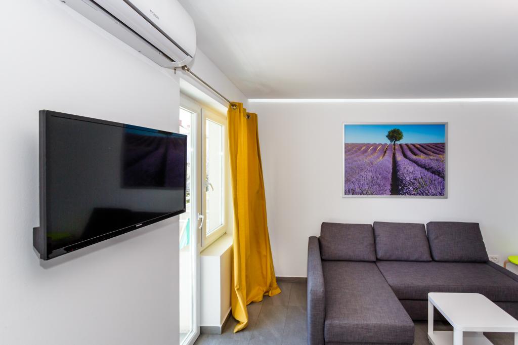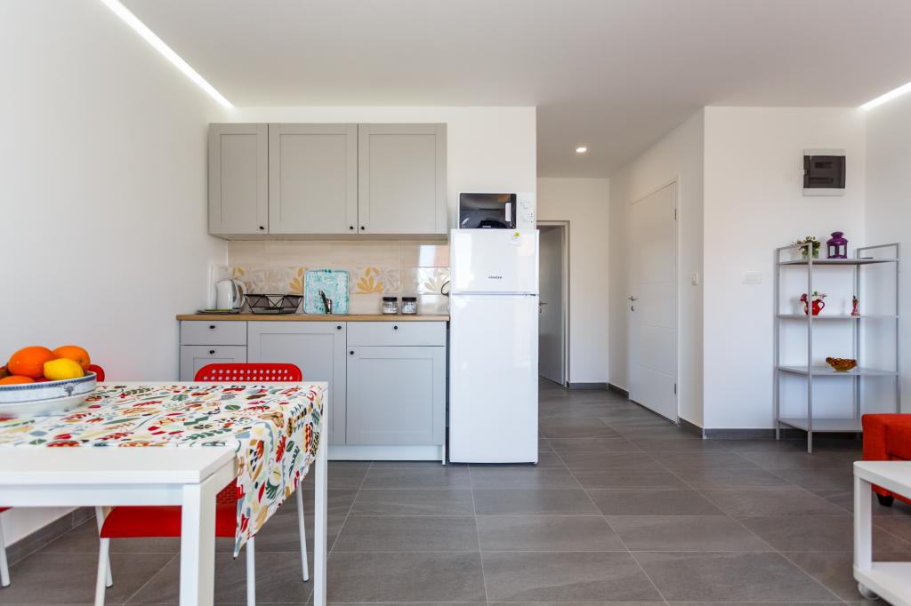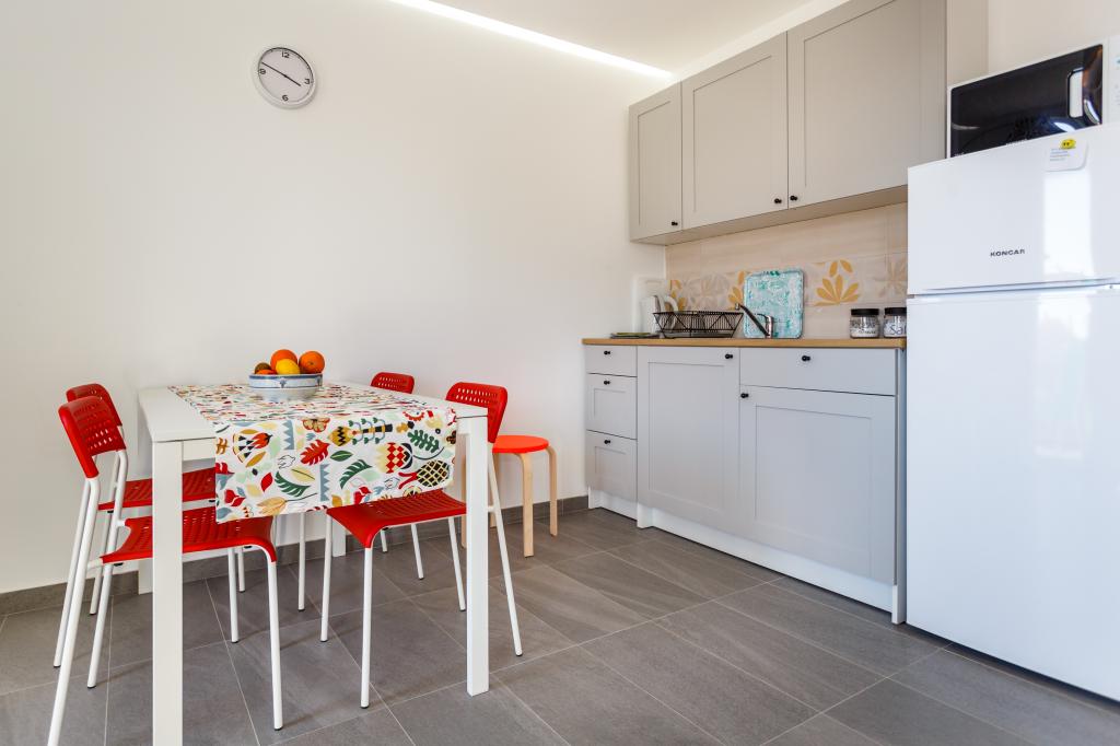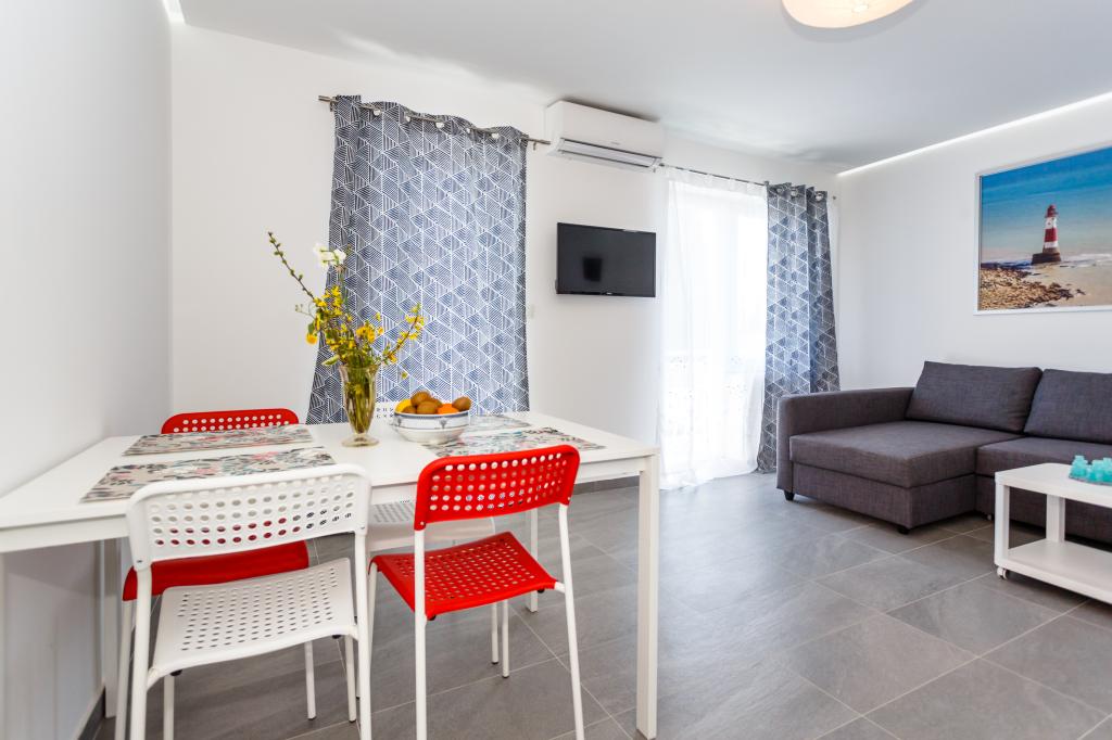 Gruß! :) Dies ist unser brandneues Apartment in der Nähe des Zentrums von Krk (ca. 5 Gehminuten). Die Wohnung verfügt über ein Schlafzimmer mit einem Doppelbett, ein Wohnzimmer mit einem Sofa, das in ein Doppelbett umgewandelt werden kann, eine Küche und ein Badezimmer mit den notwendigen Accessoires. Es verfügt außerdem über einen Balkon, auf dem Sie zu jeder Tageszeit die Sonne genießen können. Wir bieten kostenlose Parkplätze im Schatten, kostenlose Klimaanlage, Smart-TV mit Netflix, BBQ-Grill im Garten neben der Wohnung und kostenloses WLAN.