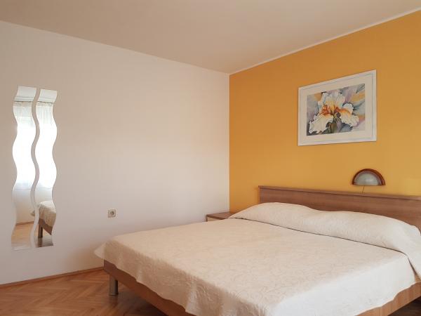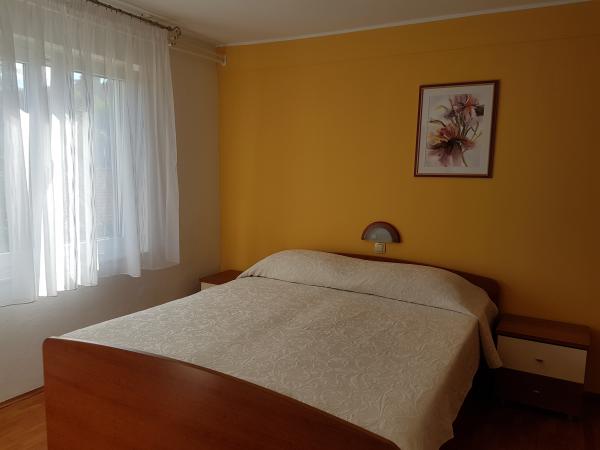 Apartment in ruhiger und attraktiver Lage in Krka, umgeben von Grün, mit Blick auf das Meer und die Stadtmauer. Die Unterkunft befindet sich 80 m vom Strand und 100 m vom Zentrum entfernt. Ein eigener Parkplatz steht zur Verfügung. Das Apartment verfügt über zwei Schlafzimmer mit Doppelbetten, eine Küche, ein Esszimmer und ein Badezimmer. In einem Schlafzimmer ist ein Zustellbett vorhanden. Die Terrasse mit Sitzgelegenheit lädt zum Entspannen ein. An den nahegelegenen Stränden finden Sie vielfältige Sport- und Freizeitmöglichkeiten. Herzlich willkommen!