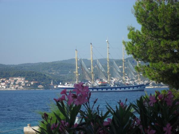 Vor allem, nette Besitzer! Wir haben ein viel größeres Zimmer für den gleichen Preis, nur weil es außerhalb der Saison war, und das Zimmer war frei - nicht vollständig darüber zu züchtigen. Gehäuse Reinraum, gut ausgestattete Küche, können Sie sicher selbst kochen Essen, wenn jemand will. Am Tag der Abreise luden die Besitzer uns zu einem Abschieds Bier zu sich selbst :) Wie für den Bereich ist in erster Linie Ruhe, nur ein paar Dutzend Meter über zwei Restaurants, von denen eines (größer - den Namen nicht erinnern) ausgezeichnetes Essen serviert. Gegrillter Fisch-Weltmeisterschaft. Die Besitzer haben ihre Panorama-Restaurant, das über dem Haus befindet sich - aber wegen des Geländes - die Menge, die Sie entweder dort mit dem Auto fahren oder zum Klettern vorzubereiten. Der Strand direkt vor dem Gebäude, die Straße ist nicht sehr beschäftigt, so dass die Nähe ist nicht belastend. Wir haben dieses Hotel wegen der Windsurf- und hier, leider wurde die Standortwahl nicht ganz getroffen - der Wind kam nur einmal während der 9-tägigen Aufenthalt. Aber der Punkt kann sicher mit dem Auto erreicht werden, so ist dies kein Problem ist - im Gegenzug erhalten wir Ruhe und leerer Strand (wir sind in der ersten Hälfte des Junis waren) Abendblick vom Balkon Korcula hat die ganze Zeit in Erinnerung. Im Allgemeinen sehr zu empfehlen !!!