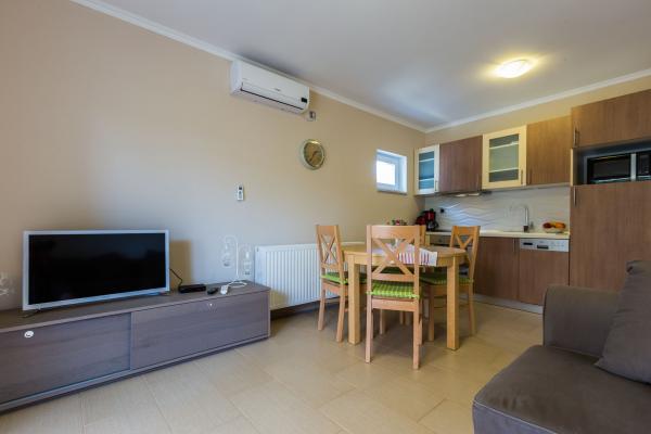 Kurtaxe ist im Preis inbegriffen.Perfekte Wohnungen. Sehr sauber. Die Dame kümmerte sich um saubere Handtücher und Bettwäsche (Wechsel nach ein paar Tagen). Perfekte Lage, mehrere verschiedene Strände innerhalb von 2-5 Minuten. Schöne Aussicht auf den Yachthafen. Der Pool ist sauber und gepflegt und nachts beleuchtet. Empfehlen!