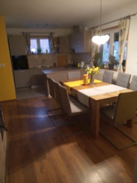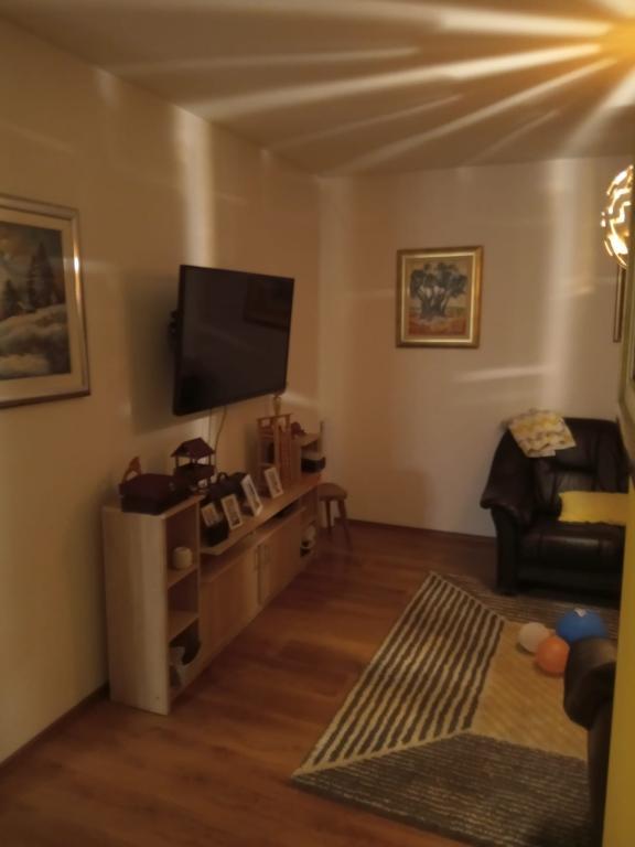Das Ferienhaus liegt auf einem kleinen Hügel mit schöner Aussicht auf das Sutlan-Tal und Slowenien. Dieses Fertighaus verfügt über 2 Schlafzimmer, ein Badezimmer mit Duschkabine und Fußbodenheizung, ein großes Wohnzimmer mit einem Fernseher und Zugang zu MAX-TV und WLAN, eine große Küche mit Kochutensilien und einem Geschirrspüler. Im Wohnzimmer gibt es einen großen Holzkamin aus Lehm und das Haus verfügt über eine Gaszentralheizung. Angrenzend an das Haus befindet sich eine überdachte Außenterrasse mit einem großen Spieß/Grill und einem Brotbackofen. Die Terrasse bietet Platz für bis zu 20 Personen. Hinter dem Haus gibt es einen Platz zum Abstellen mehrerer Fahrzeuge.