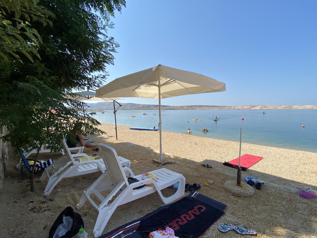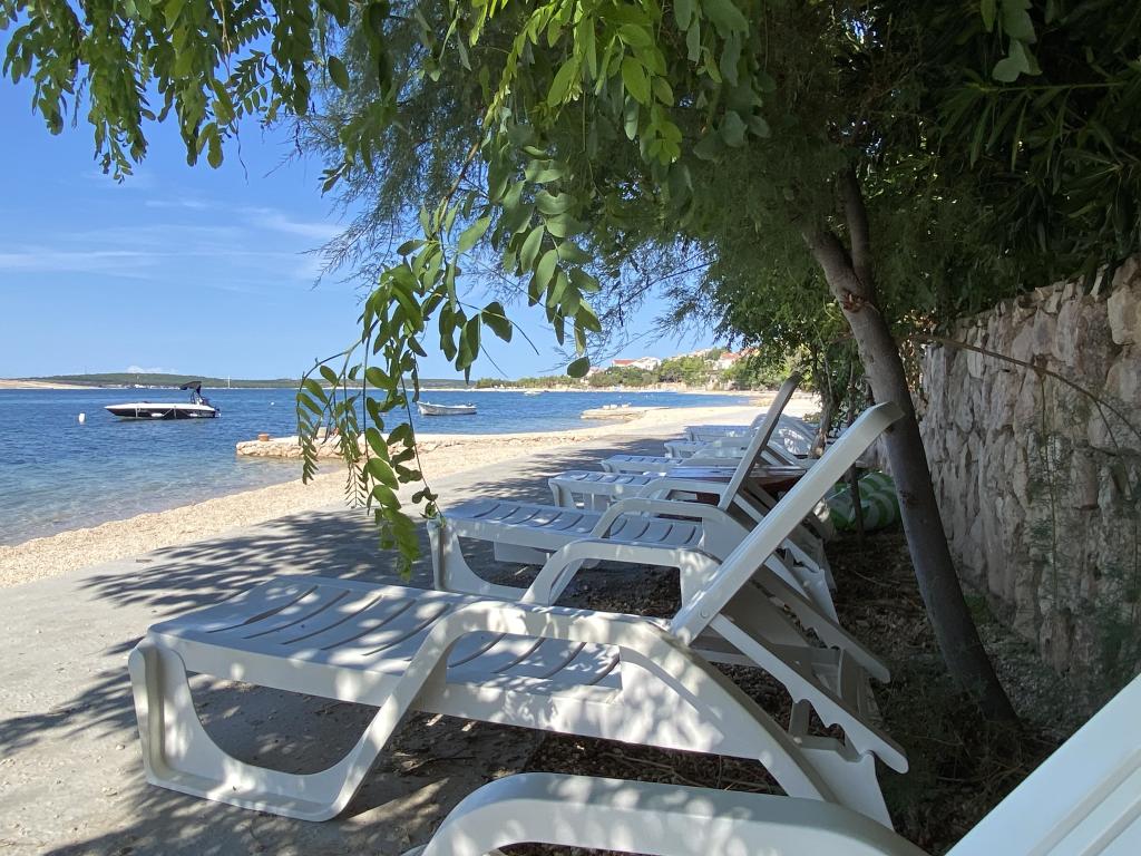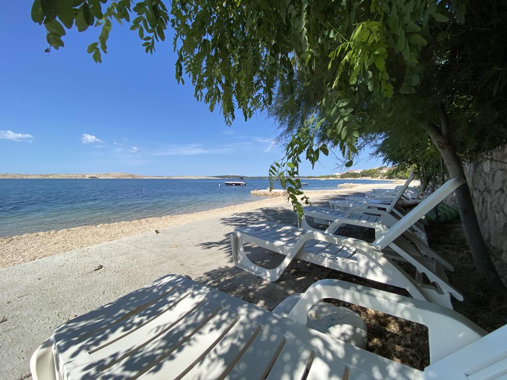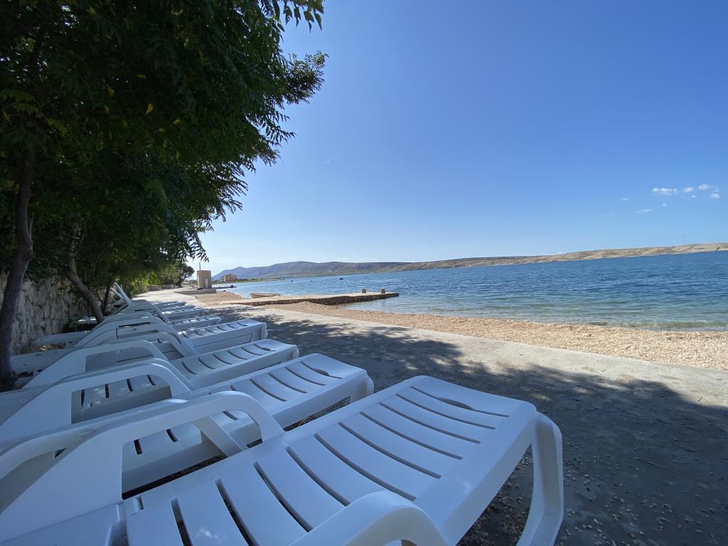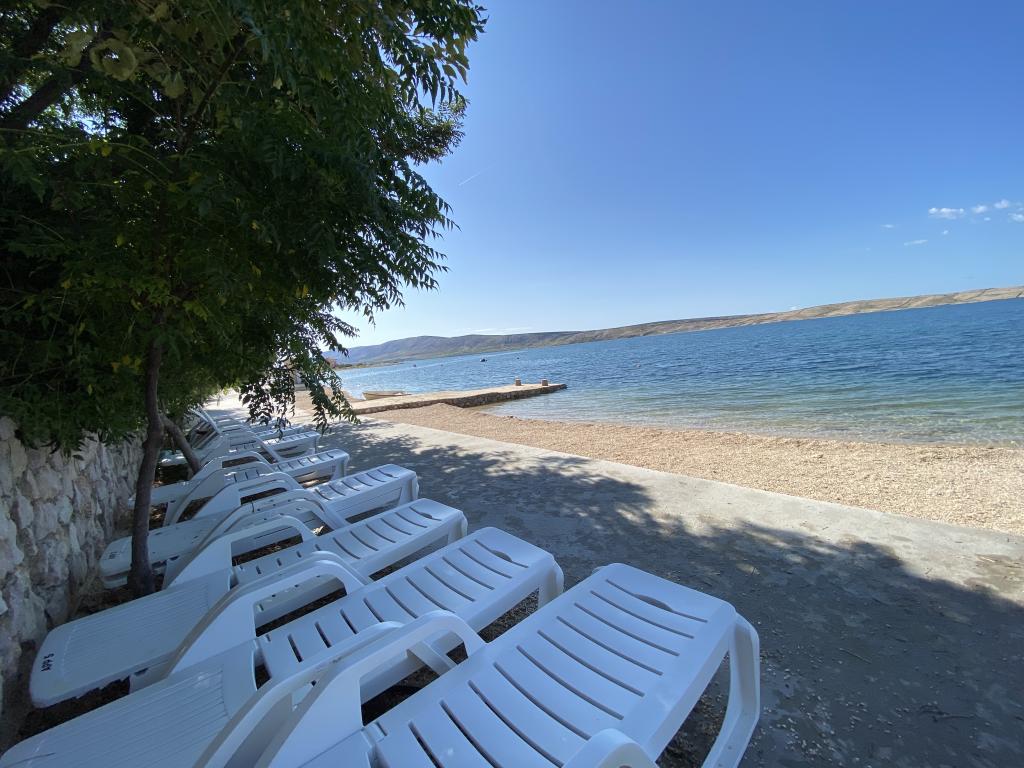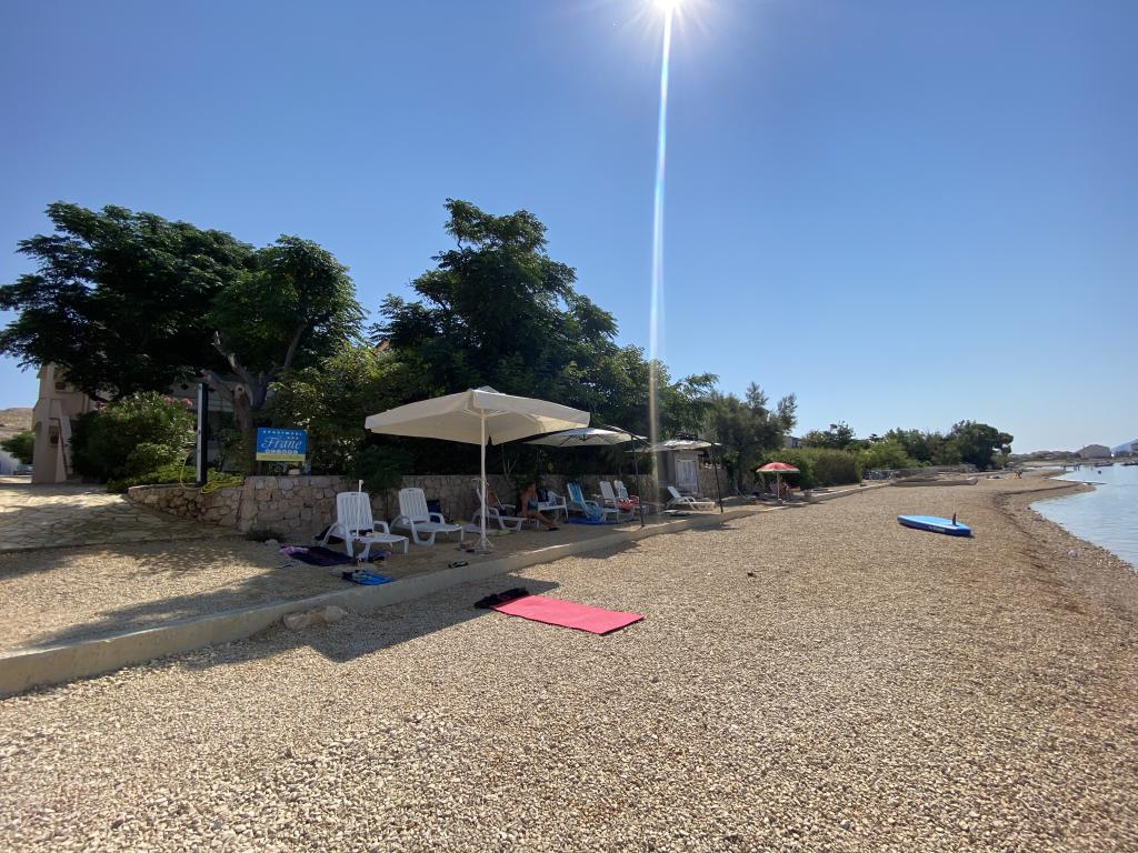 Es besteht die Möglichkeit, einen Gemeinschaftsgrill im Garten zu nutzen. Eine Außendusche steht ebenfalls zur Verfügung. Zu jeder Wohnung gehört ein im Preis inbegriffener Parkplatz. Weitere Informationen finden Sie auf der Website: www.ana-frane-pag.com. Entfernungen: Stadtzentrum: 100 m, Strand: 10 m, Geschäft: 500 m, Restaurant: 50 m, Geldautomat: 500 m, Apotheke: 5 km, Bushaltestelle: 5 km