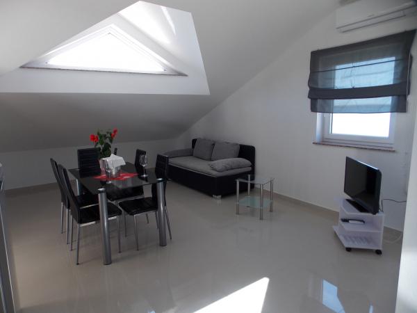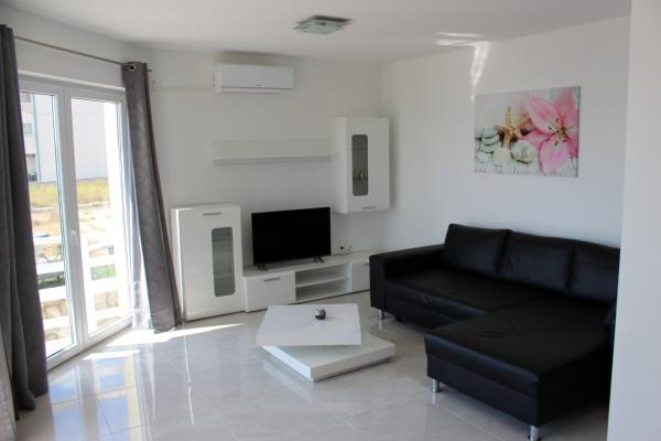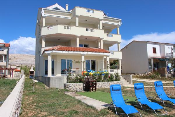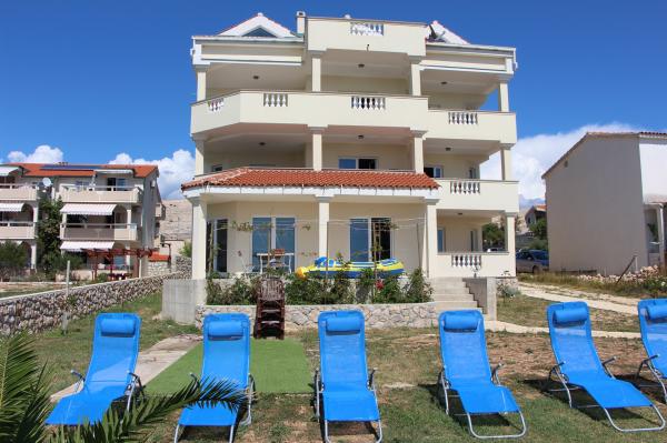 Die voll und modern ausgestatteten Apartments befinden sich in einem Neubau, nur 20 m vom Meer entfernt. Alle Apartments verfügen über große Terrassen mit herrlichem Blick auf die Bucht von Pag und unvergesslichen Sonnenuntergängen. Das Haus bietet einen großen Garten und einen privaten Parkplatz. Der private Sandstrand grenzt direkt ans Haus und ist somit ein integraler Bestandteil davon. Daher ist die Unterkunft ideal für Familien mit Kindern, die hier herzlich willkommen sind. Die Stadt Novalja mit ihren vielfältigen kulturellen und sportlichen Angeboten ist 5 km entfernt.