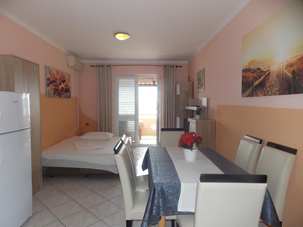 Die Wohnungen sind sauber, dekoriert. Privater Parkplatz. Die Anlage verfügt über einen eigenen Strand, ein Teil des Strandes steht auch für Haustiere zur Verfügung. Wifi-Verbindung ist auch am Strand. Der Besitzer steht den Gästen immer zur Verfügung. Wir kommen wieder.