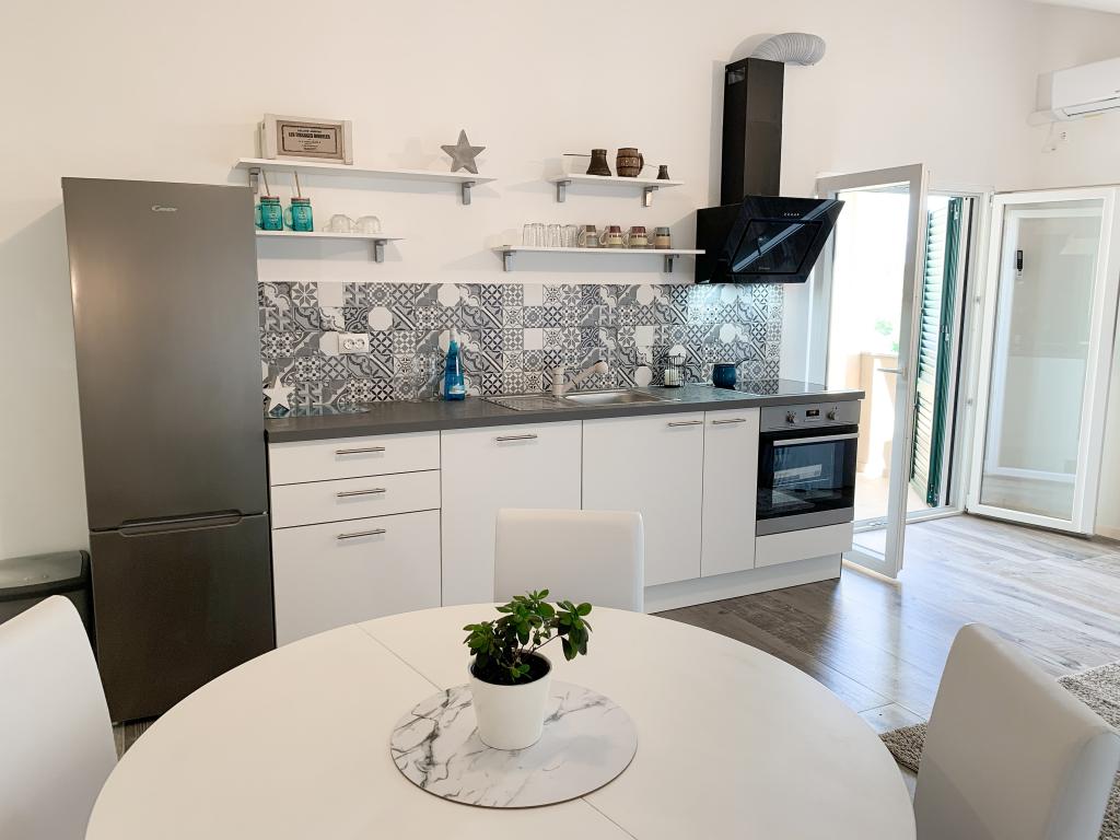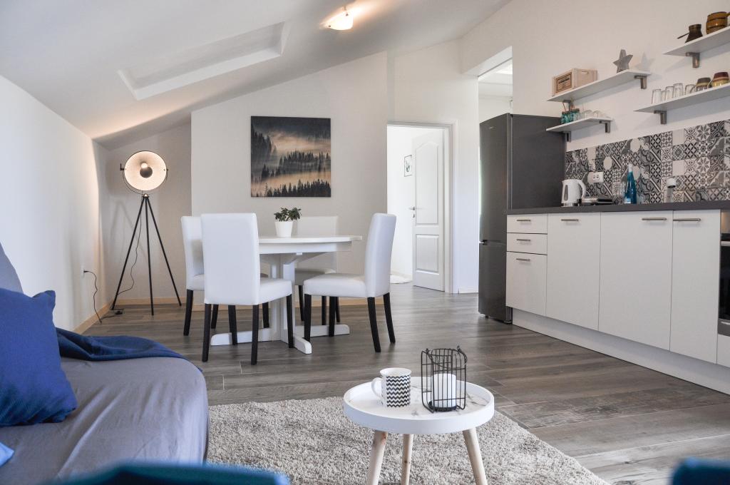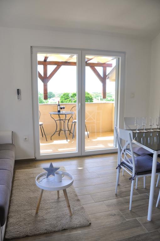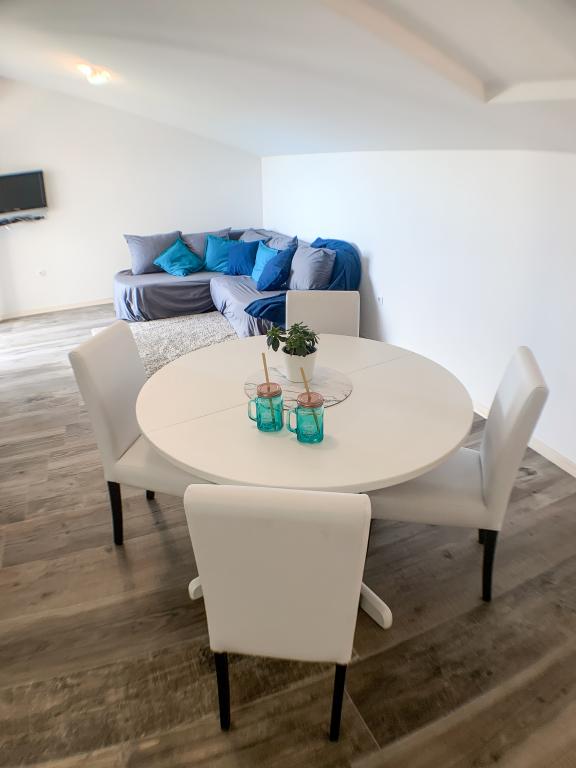 Die Apartments Carnizza bieten einen großen Innenhof mit kostenlosen und überdachten Parkplätzen und einem Kinderspielplatz für Fußball, Volleyball und Schaukeln. Sie bieten auch Platz, um um das Haus herumzugehen. Das Haus liegt in einer ruhigen Umgebung und der Blick ist auf das Meer und den Velebit gerichtet.