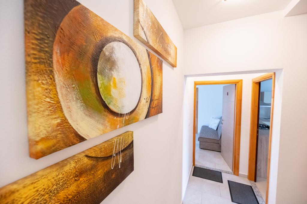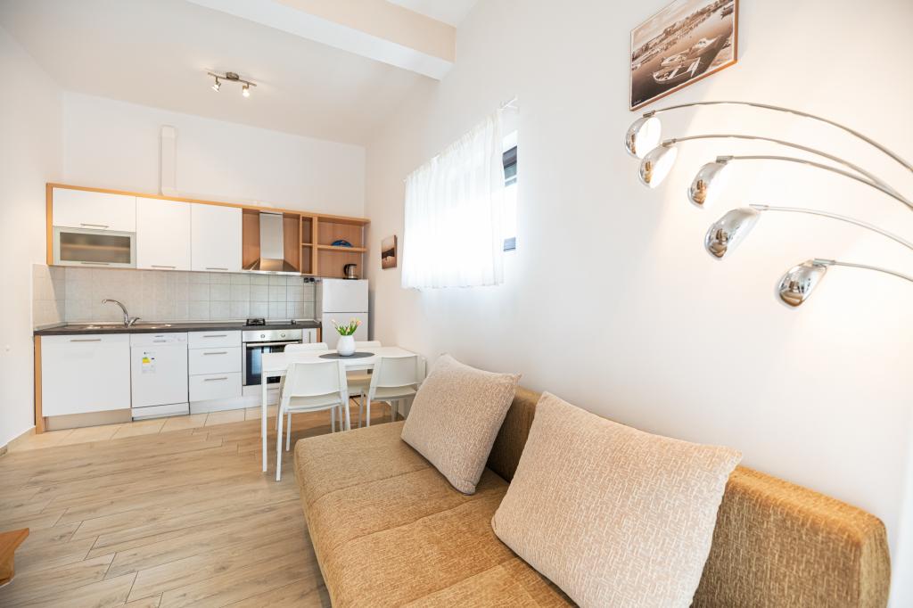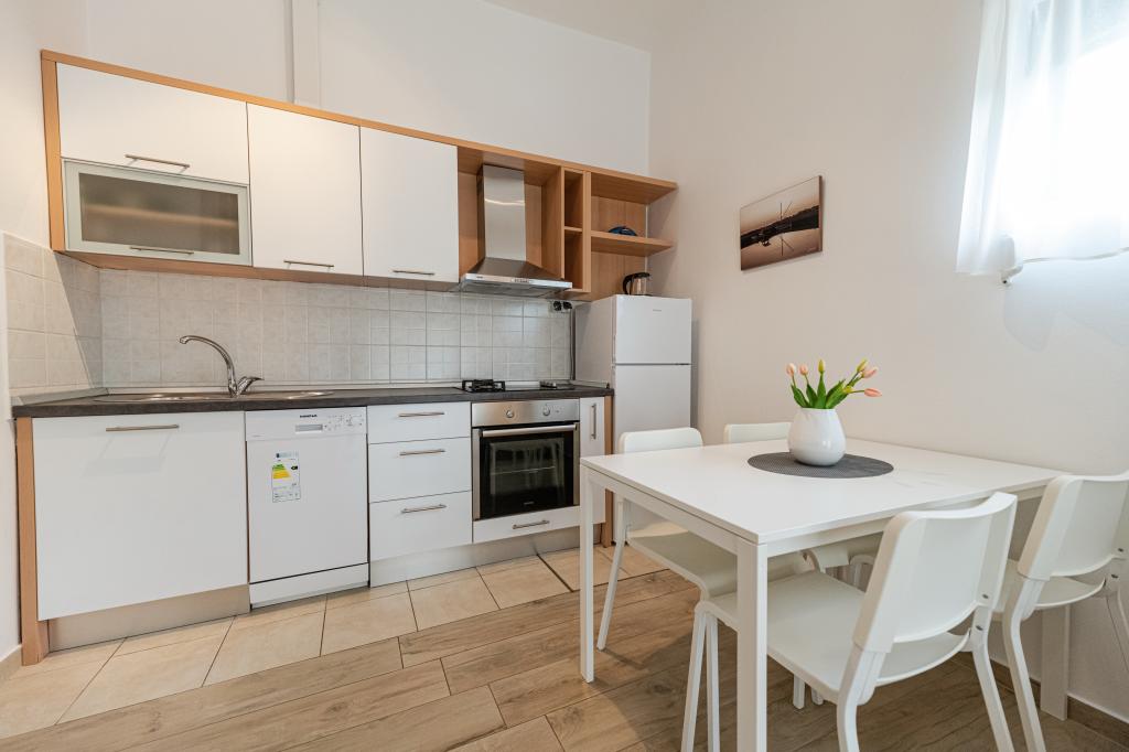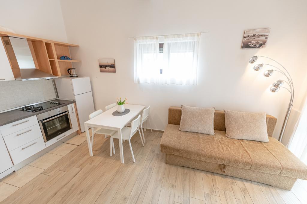 Die Wohnung ist gut ausgestattet, sehr sauber, gepflegte Umgebung. Der Besitzer ist sehr freundlich und hilfsbereit. Im Gasthof, der zu den Appartements gehört, gibt es ausgezeichnete, sehr leckere Pizzen. Der Strand liegt direkt vor den Apartments und ist für kleine Kinder sehr gut geeignet. Ein sehr ruhiges Dorf für einen ruhigen, entspannten Urlaub. Ausgezeichnet, großes Lob.
