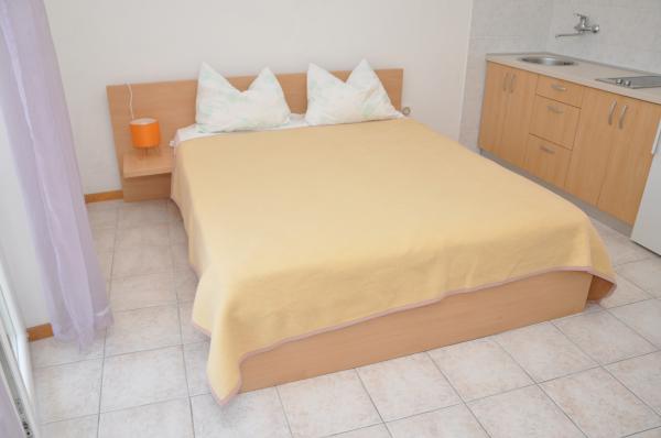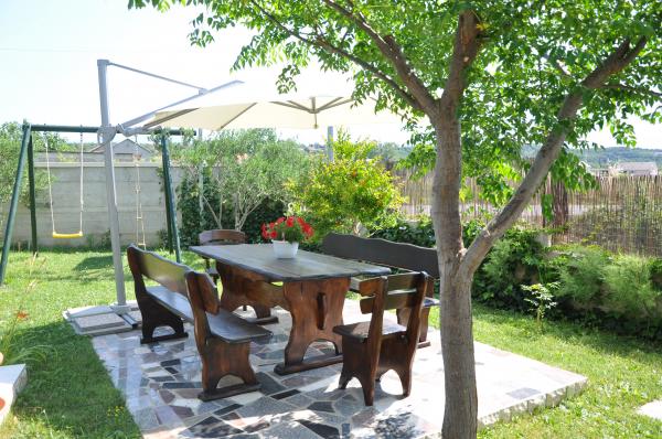 Apartments 2/2 sind komplett ausgestattet, Schlafzimmer für drei Personen (Babybett auf Anfrage), Wohnzimmer mit Küche hat ausziehbares Sofa, Fernseher, Klimaanlage, Internet und Balkon. Studio ideal für zwei, komplett ausgestattet, jedes Studio hat einen Balkon, Klimaanlage und Internet. Das Haus hat einen großen Garten mit eingezäuntem Hof, Grill, Kinderspielplatz und Parkplatz. Wohnung 2/2 mit zwei Schlafzimmern befindet sich 50 Meter von diesem Haus entfernt, die Wohnung befindet sich im Erdgeschoss, hat eine eigene Veranda, Klimaanlage, Internet, Parkplatz, Grill und einen großen Garten.