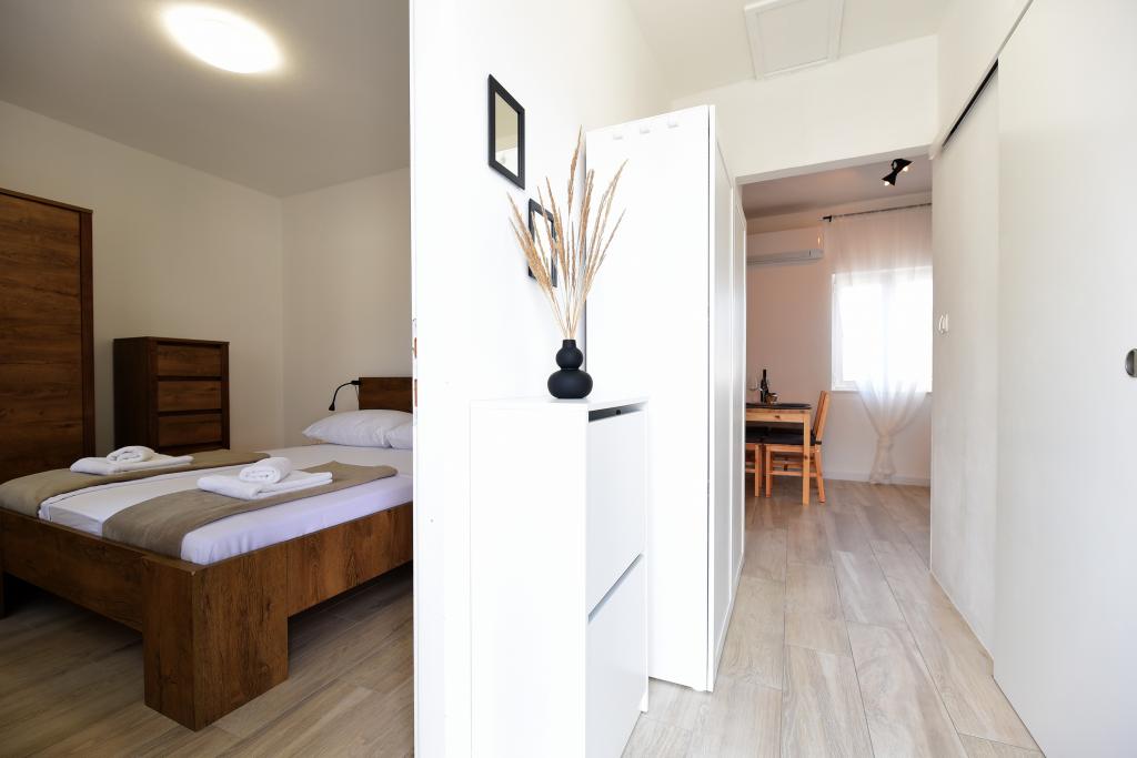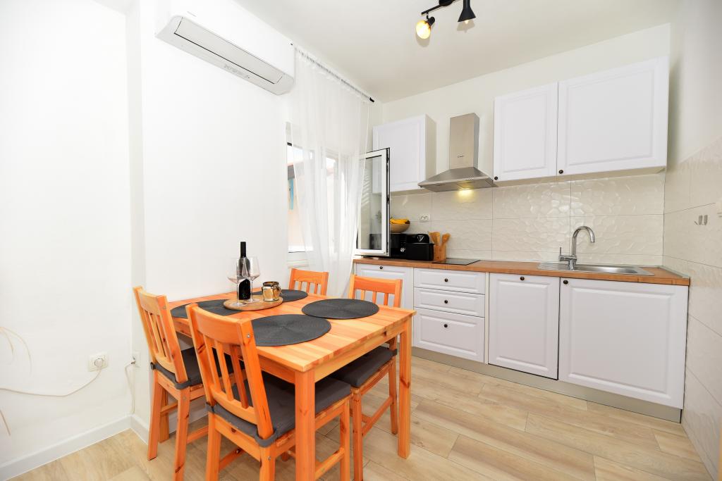 Modern eingerichtete Wohnung in einem attraktiven Reihenhaus mit Garage, 50 m vom Meer und Strand entfernt. Ideal für einen ruhigen Familienurlaub, komplett ausgestattet mit Terrasse, Garage und einem Raum mit Waschmaschine.