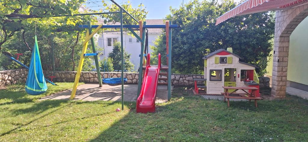 Wenn Sie einen Urlaub wünschen, buchen Sie eine Unterkunft in einem der sieben Apartments in Jeric Klara Apartments in Lopar in der Nähe des schönsten Sandstrandes - Paradise Beach. Dieser Strand ist sogar 1,5 km lang und einer der größten Strände in der Nähe der Adria. Aufgrund des seichten warmen Meeres ist es ideal für Familien mit Kindern. Wir bieten sieben komfortable Apartments in verschiedenen Größen zwischen 40 und 100 m2. In der Nähe des Hauses befindet sich ein schattiger Garten mit Terrasse, Grill, Liegestühlen, Kindersand, Schaukeln und Rutschen. Lopar und die Insel Rab bieten 22 Buchten mit Sand- oder Felsstränden, zahlreiche Wander- und Fahrwege und andere Natur- und Kulturschönheiten, die es wert sind, erkundet zu werden! Zum nächstgelegenen Strand - einem wunderschönen Sandparadiesstrand - benötigen Sie nur 2 Gehminuten. In der Nähe gibt es verschiedene Restaurants, Cafés, Banken, Bäckereien, Post, Apotheke, Sportzentrum und Geschäfte. Es wird uns eine Freude sein, Sie zu beherbergen.