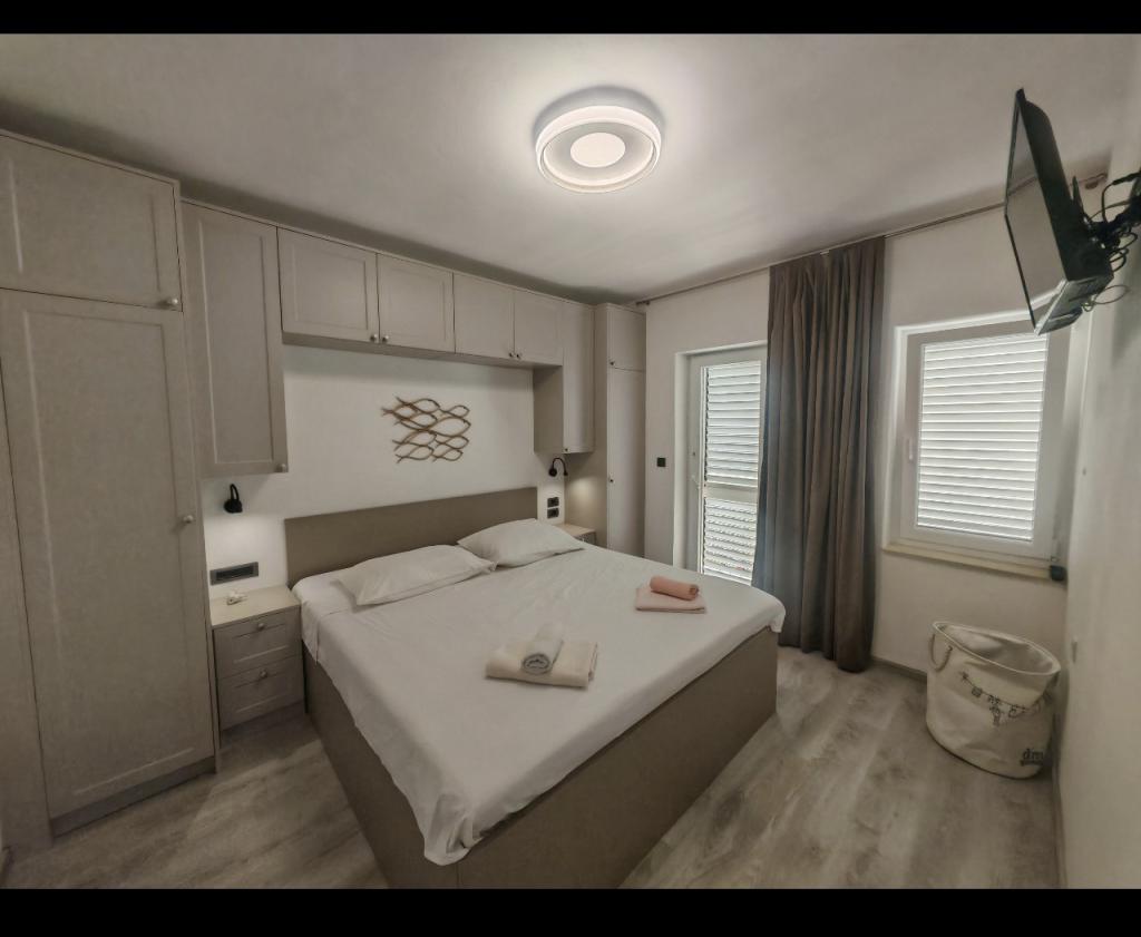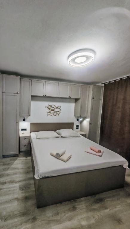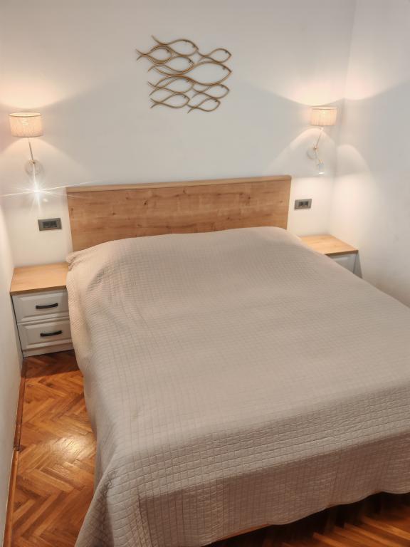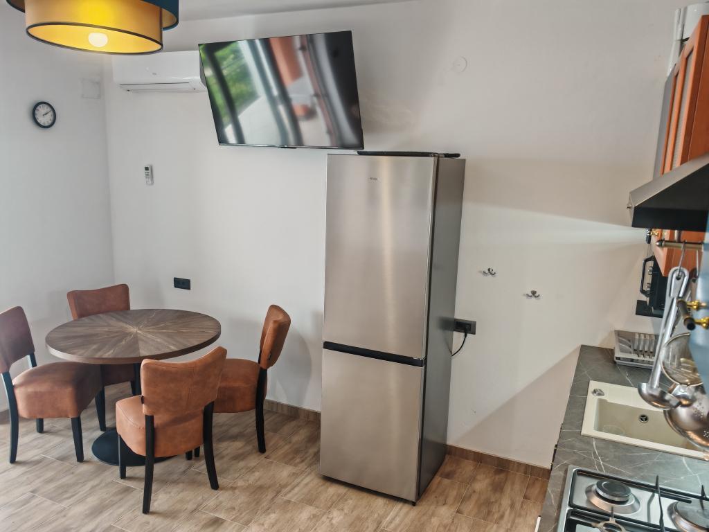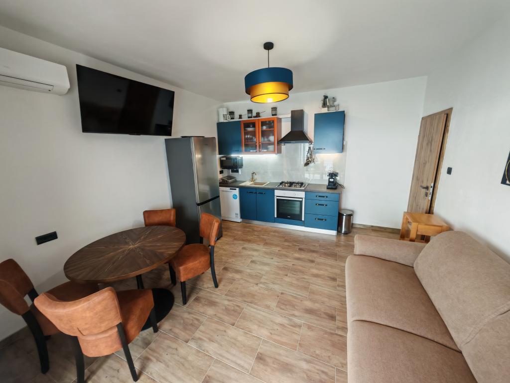 Die Apartments liegen direkt am Meer mit Blick auf die Inseln Cres und Lošinj und sind ideal für einen ruhigen und erholsamen Urlaub abseits von Lärm und Hektik. Sie sind komplett ausgestattet. Das Stadtzentrum mit einem Geschäft, mehreren Restaurants, einem Café, einem Obst- und Gemüseladen sowie einem Geldautomaten ist nur 300 Meter entfernt. Ein Sandstrand für Kinder befindet sich in 200 Metern Entfernung. Vor dem Haus liegt eine kleine grüne Oase mit einem üppigen Gemüsegarten, an dem sich die Gäste bedienen können. Die Apartments verfügen über einen eigenen Parkplatz und eine Grillterrasse im Erdgeschoss, die Sie nutzen können. Auf Wunsch organisieren die Gastgeber gerne einen Koch. Zwischen 9:00 und 23:00 Uhr ist Ruhezeit. Lun liegt im Norden der Insel Pag, die reich an tausendjährigen Olivenbäumen ist, und ist ein einzigartiges Gebiet in diesem Teil des Mittelmeers. Über 80.000 Olivenbäume erstrecken sich über eine Fläche von 400 Hektar. Lun liegt in der Nähe von Novalja, in der Nähe der Inseln Rab, Lošinj, Cres und Silba sowie fünf Nationalparks. Tägliche Bootsverbindung für Ausflüge nach Rab.