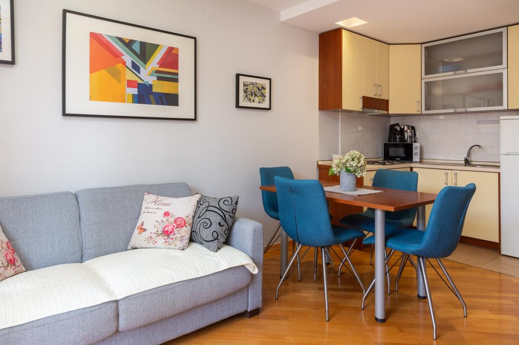 Die Apartments Brkić bieten geräumige Familienapartments mit hochwertigen Möbeln. Alle Wohnungen verfügen über eine hochwertige WLAN-Verbindung, sind klimatisiert und verfügen über einen kostenlosen Parkplatz vor dem Haus. Unsere Penthouse-Wohnung bietet eine große Terrasse mit Blick auf das Meer und eine Feuerstelle zum Grillen und Backen. Im Erdgeschoss des Gebäudes gibt es einen Gemeinschaftsraum, in dem Wäsche gewaschen werden kann. Unsere Mitarbeiter stehen Ihnen während Ihres Aufenthaltes mit Rat und Tat zur Seite.