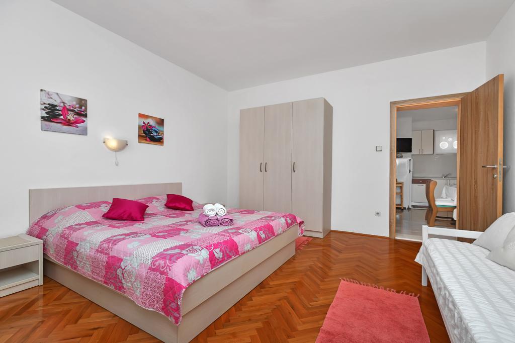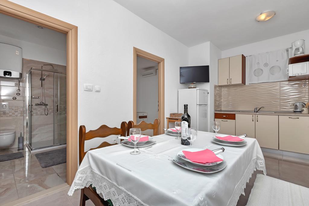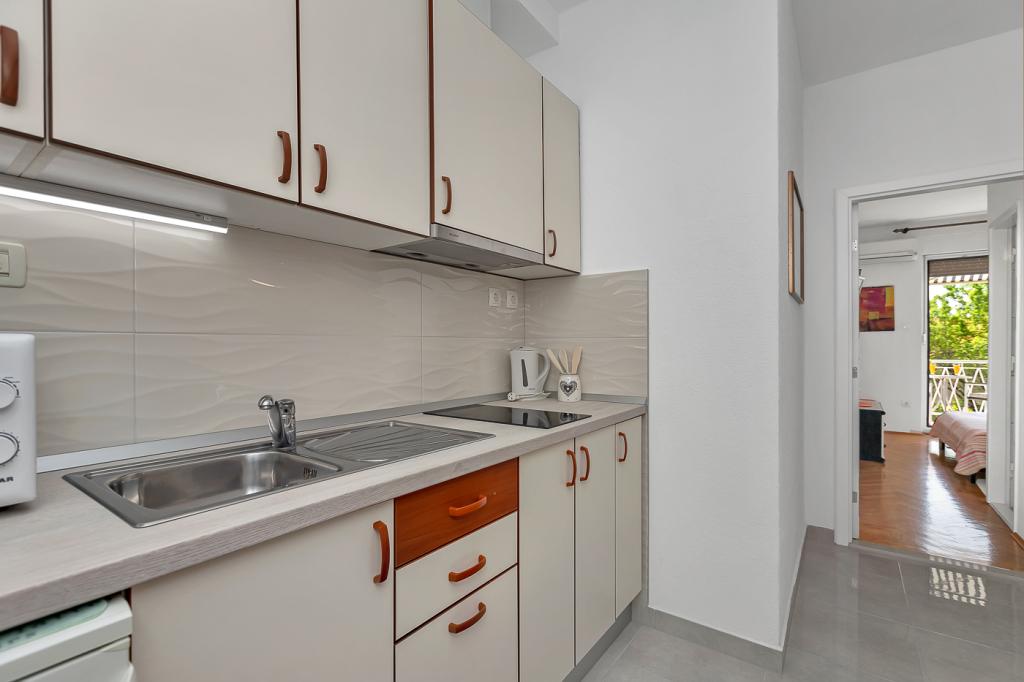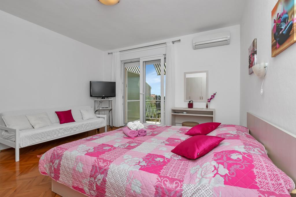 Unsere modern ausgestatteten Apartments befinden sich in einem Familienhaus in einem ruhigen Teil der Stadt, zwischen dem Hotel Biokovka und dem Hotel Places-Dalmacija. Der Sandstrand ist nur 50 Meter vom Haus entfernt, ebenso wie zwei Lebensmittelgeschäfte. Das Stadtzentrum erreichen Sie in 10 Minuten zu Fuß entlang einer schönen, von Pinien umgebenen Promenade, an der sich zahlreiche Restaurants und andere interessante Einrichtungen befinden. Wir verfügen über 3 Wohneinheiten, jede mit eigenem Balkon, ausgestatteter, vom Schlafbereich getrennter Küche und separaten Badezimmern. Der Preis beinhaltet Parkplatz, Internet, Klimaanlage und Kurtaxe.