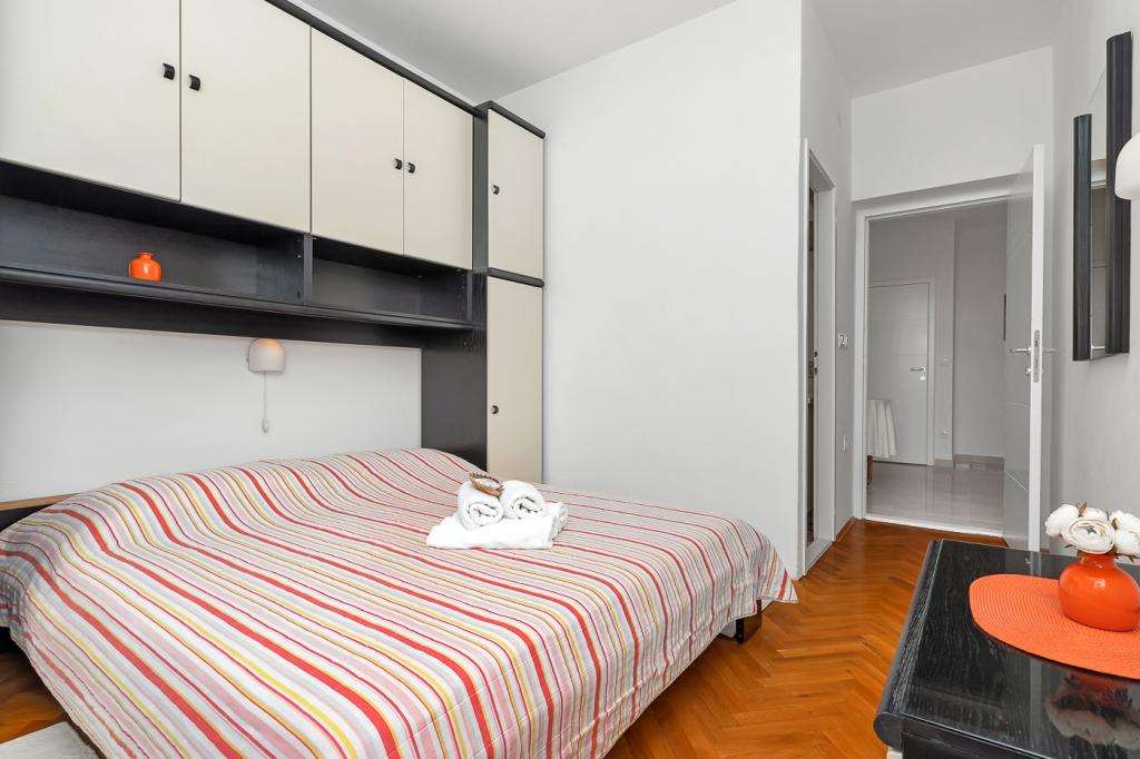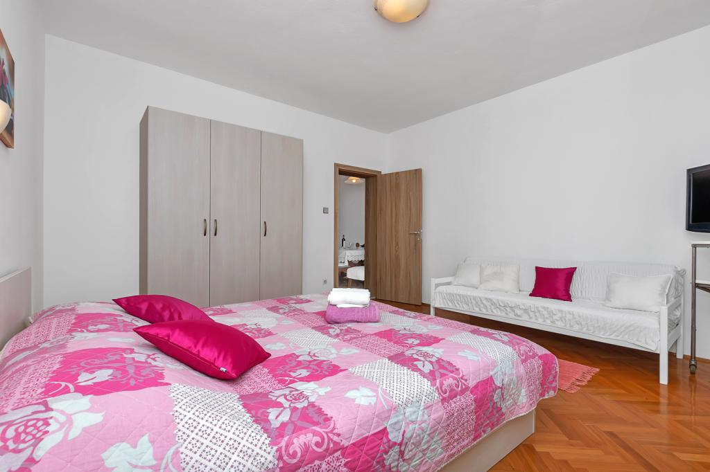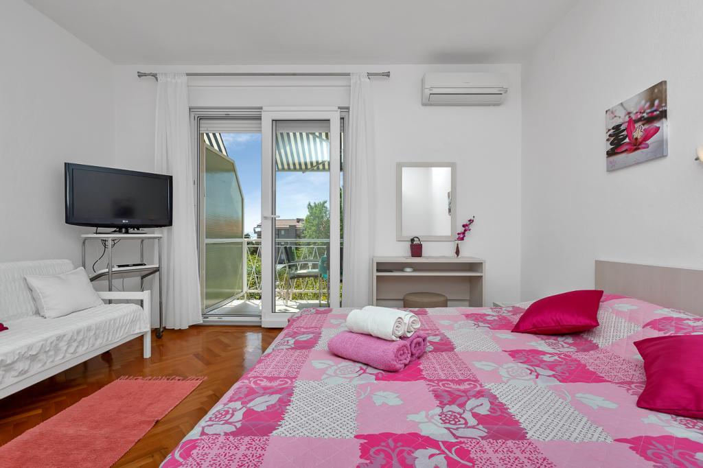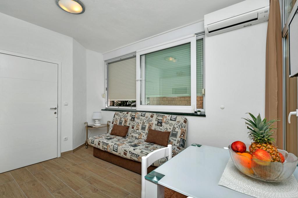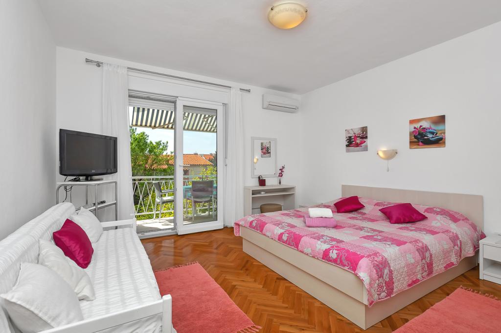 Unsere modern ausgestatteten Apartments befinden sich in einem Familienhaus in einem ruhigen Teil der Stadt, zwischen dem Hotel Biokovka und dem Hotel Places-Dalmacija. Der Sandstrand ist nur 50 Meter vom Haus entfernt, ebenso wie zwei Lebensmittelgeschäfte. Das Stadtzentrum erreichen Sie in 10 Minuten zu Fuß entlang einer schönen, von Pinien umgebenen Promenade, an der sich zahlreiche Restaurants und andere interessante Einrichtungen befinden. Wir verfügen über 3 Wohneinheiten, jede mit eigenem Balkon, ausgestatteter, vom Schlafbereich getrennter Küche und separaten Badezimmern. Der Preis beinhaltet Parkplatz, Internet, Klimaanlage und Kurtaxe.