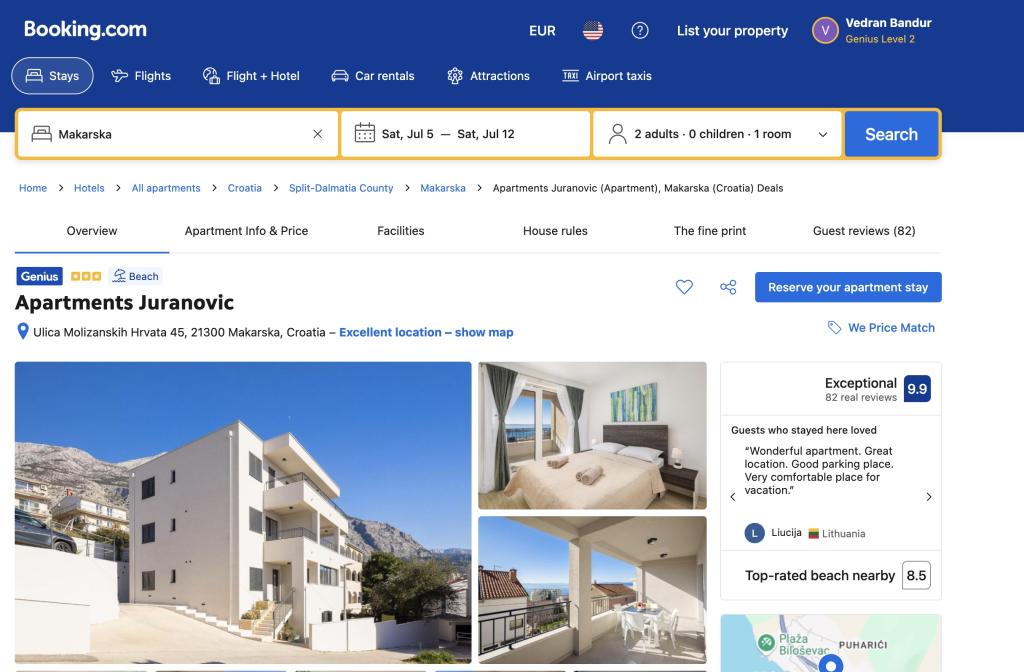 Die Apartments Juranović liegen in Makarska, nur 250 m vom Strand von Makarska entfernt und bieten Unterkünfte mit Meerblick, kostenfreiem WLAN und kostenlosen Privatparkplätzen. Alle Unterkünfte des Apartmentkomplexes sind mit einer Klimaanlage, einer Sitzecke, einem Flachbild-TV, einer Küche, einem Essbereich und einem eigenen Badezimmer mit Haartrockner, Dusche und Waschmaschine ausgestattet. Ein Backofen, ein Kühlschrank und ein Kochfeld sowie ein Wasserkocher sind ebenfalls vorhanden. Unsere Mitarbeiter stehen Ihnen während Ihres gesamten Aufenthaltes mit Rat und Tat zur Seite.