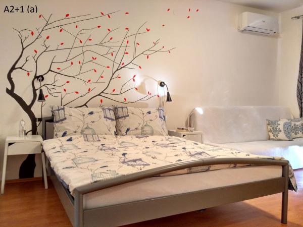 Alles Lob für die Gastfreundschaft und Freundlichkeit in der Korrespondenz während der Vermittlung der Unterkunft. Ruhiger Ort zum Ausruhen. In der Nähe von Geschäften. Das Zentrum ist nicht zu weit entfernt und bei einem Spaziergang am Meer entlang können Sie die wunderschönen Sonnenuntergänge genießen. Das Studio blickt auf den Berg, man fühlt sich nicht warm. Eine Stadt für alle Altersgruppen. Für aktive Erholung und Genuss. Wir haben keine Klimaanlage eingebaut. Wenn wir ein Problem gehabt hätten, hätte uns der Besitzer meiner Meinung nach geholfen. Erschwinglich. Alles Gute. Anna und Joakim
